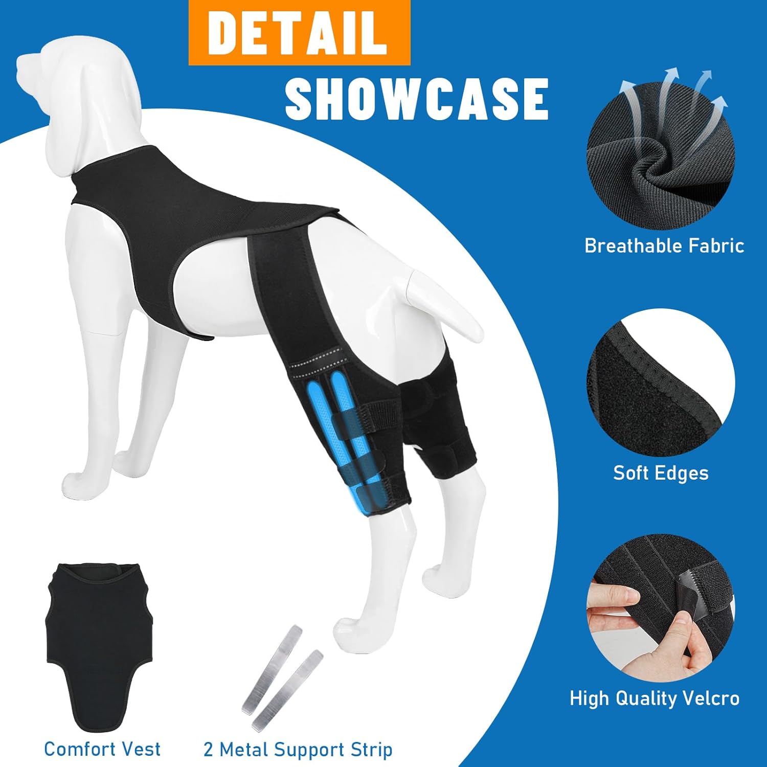 Dog Knee Brace for Hind Legs- Adjustable Dog Leg Brace for Both Back Leg Helps with Torn ACL, Luxating Patella, Ligament Injuries & Arthritis, L
