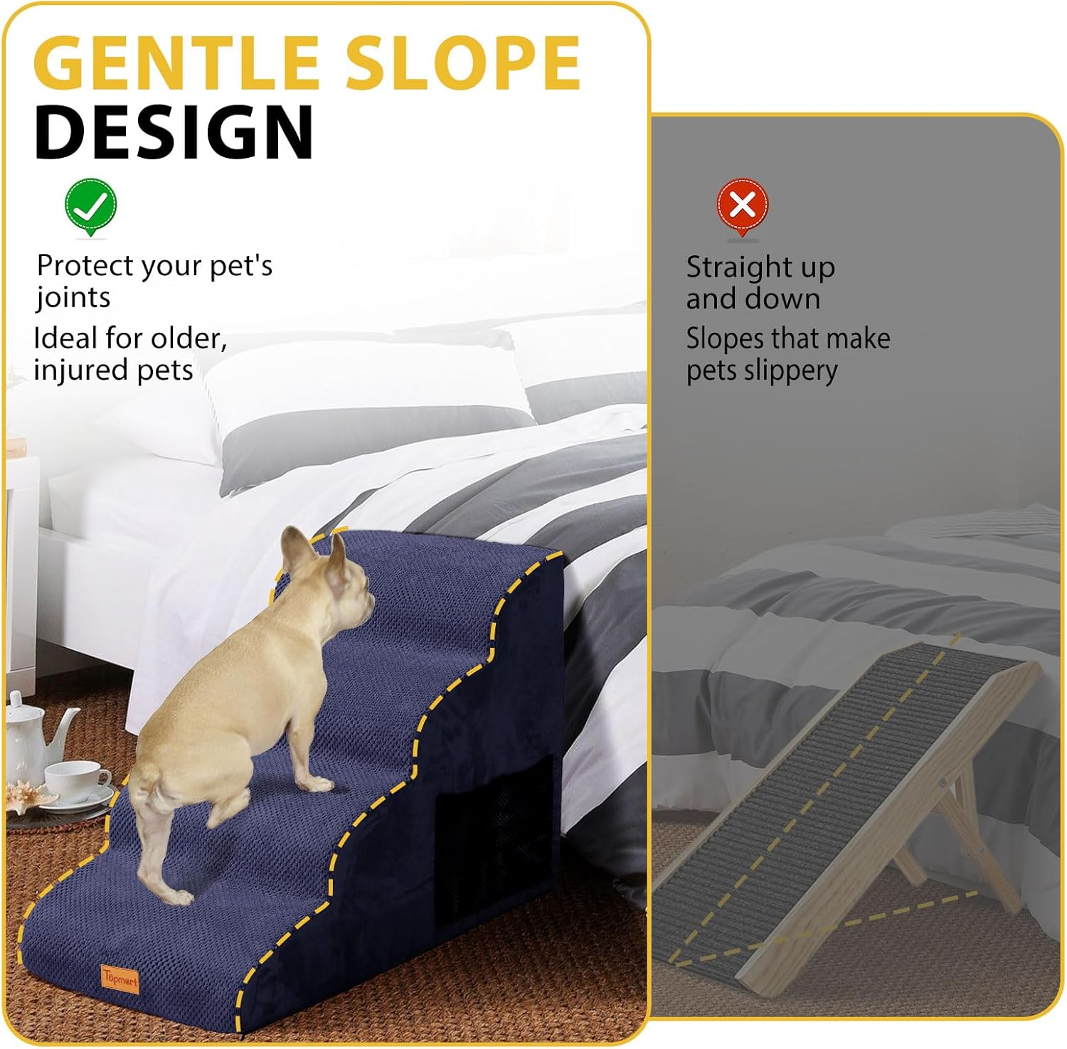 Dog Stairs for Small Dogs,4-Step,Foam Dog Steps&Ramps for Couch/High Beds with Waterproof &Removable Cover, Non-Slip, Blue