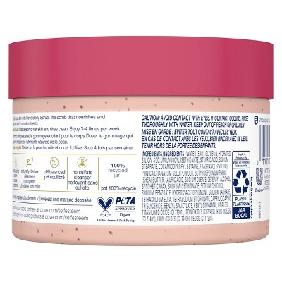 THOUGHTFULLY MADE - This body scrub is PETA-certified cruelty-free. Feel good about switching to Dove. A great addition to your skin care routine.
