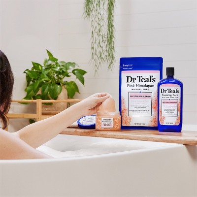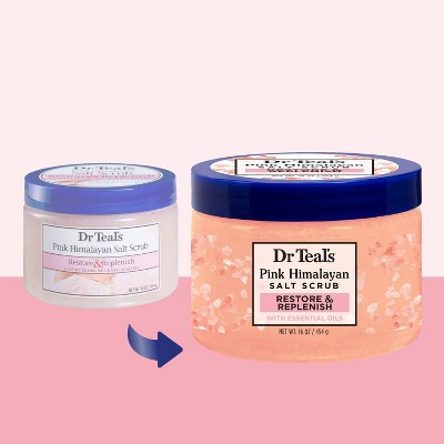 Dr Teal's Pink Himalayan Salt Body Scrub blends mineral-rich Pink Himalayan Salt and Pure Epsom Salt to exfoliate and smooth skin. Restorative Bergamot and Sweet Orange essential oils soothe the senses, while Shea Butter and Jojoba Oil leave skin soft and moisturized.Dr Teals Epsom Body Scrub is formulated with Pure Epsom Salt, Natural Essential Oils and Minerals to gently exfoliate skin and soothe the senses. Enriched with Shea Butter and Jojoba Oil, this body scrub will leave skin moisturized.DIRECTIONS: Massage onto skin in circular motions to slough away rough, dry areas.