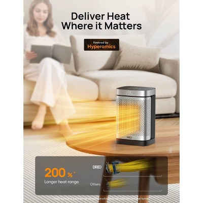 Faster Heat Than Ever: Powered by Dreo Hyperamics Technology, Atom One space heater heats up more efficiently with up to 1500W working power, reaching your desired temperature immediately, letting you feel fast, balmy heat straight away. This portable heater is meant to sit by your feet on the floor, near your hands on a desk, or carry around indoors. Heating Coverage: 200 sq.ft