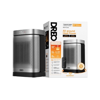 Dreo 1500W Atom Core Portable Oscillating Ceramic Space Heater for Home with Remote and Thermostat 1-12H Timer Silver