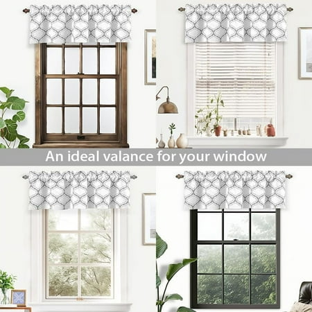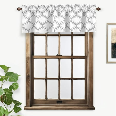 DriftAway Geo Trellis Polyester Window Decoration Curtain Valance Rod Pocket 14"L x 52"W Plus 2" Header Gray