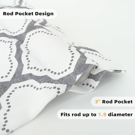 Made of 100% Polyester, Exclusive of Decoration, Imported INCLUDES: one valance. Extremely soft to the touch. SIZE:52”WX14”L 2”HEADER HEADER TYPE: 3” rod pocket Made of 100% Polyester, Exclusive of Decoration, Imported INCLUDES: one gray geometric trellis pattern valance. Extremely soft to the touch. SIZE:52”WX14”L 2”HEADER HEADER TYPE: 3” rod pocket