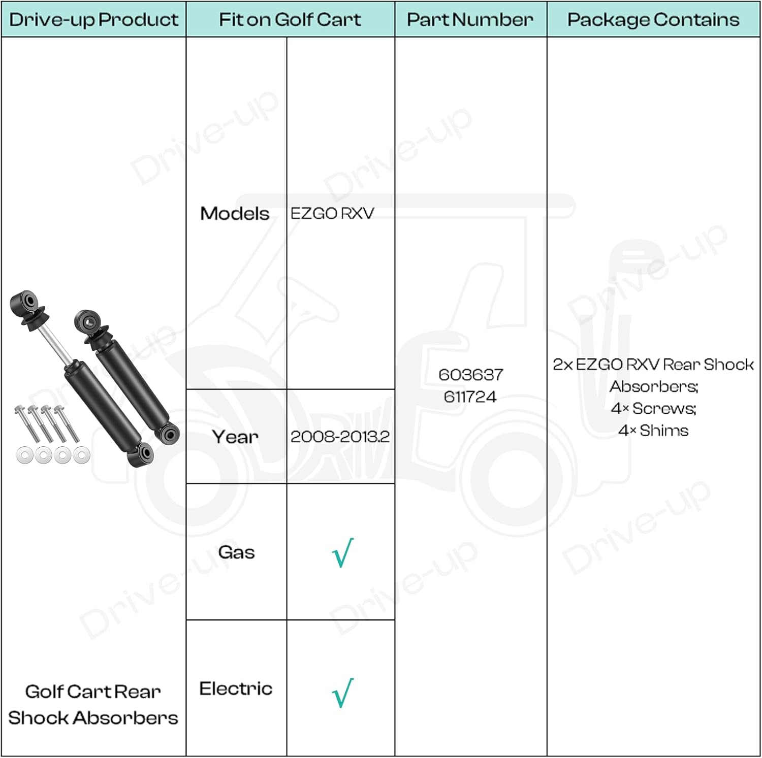 Compatible: Drive-up rear shock absorbers fits EZGO RXV 2008-2013.2 gas and electric golf carts
