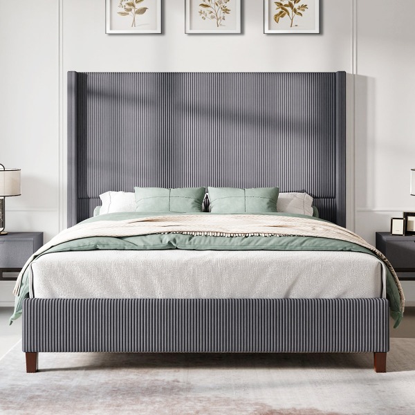 Dunwoody Upholstered Wingback King Size Platform Bed,Gray