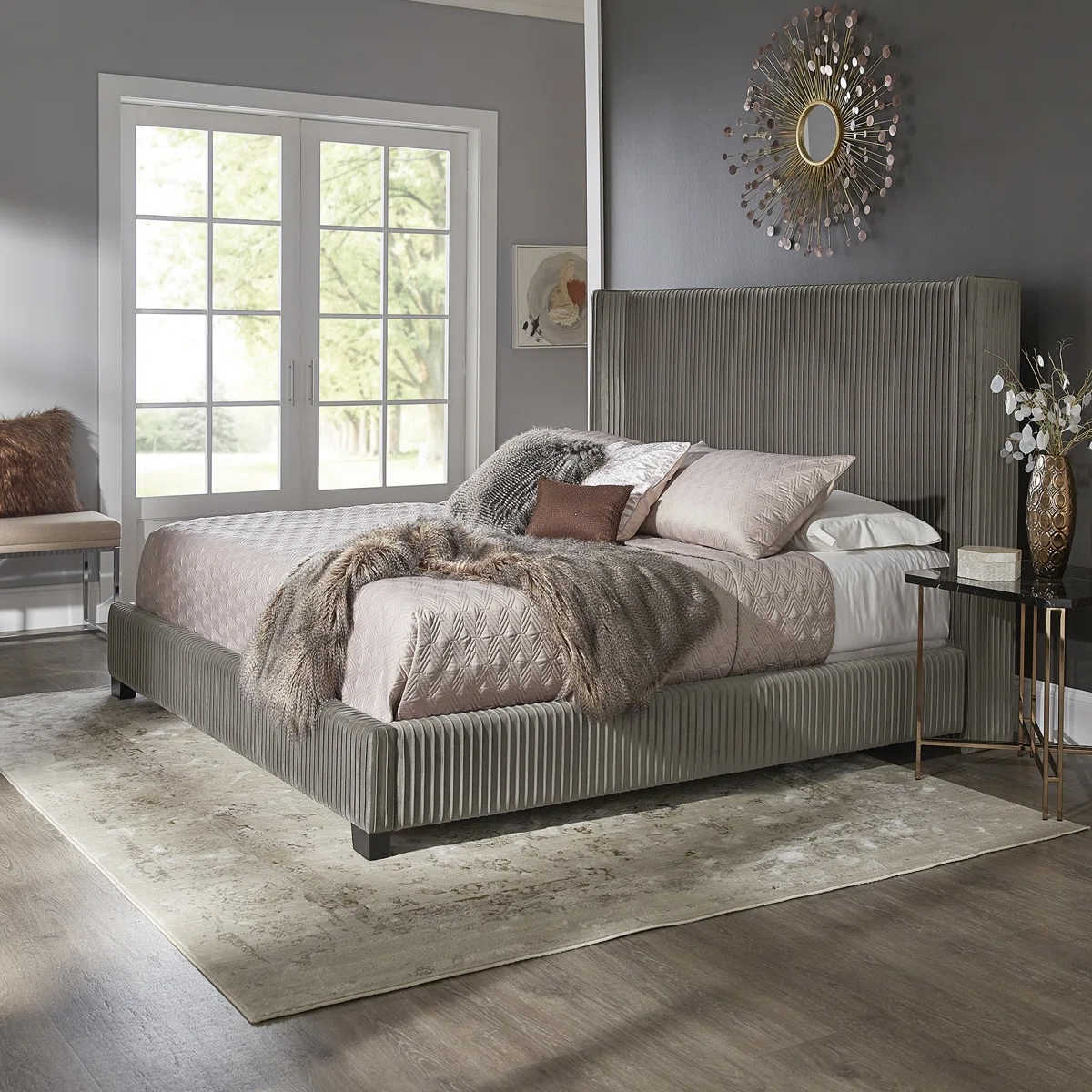 Dunwoody Upholstered Wingback Queen Size Platform Bed,Gray