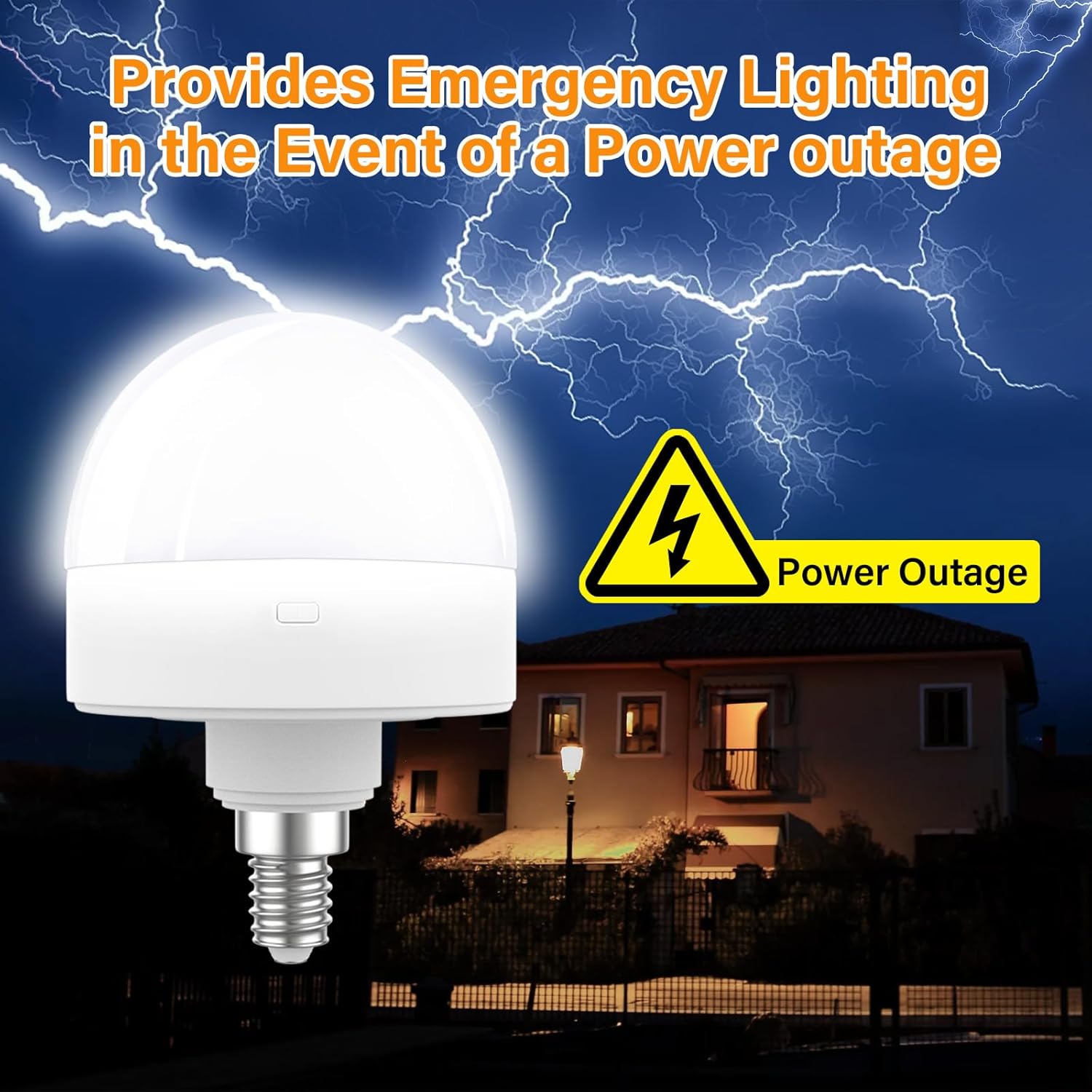 【E12 Rechargeable Light Bulb with Detachable Charging】Our rechargeable LED light bulb built in larger 2000mAH battery capacity and detachable charging feature lets you recharge easily, 6-30 hours of continuous use after 2-3 hours of charging with the included charging cable.