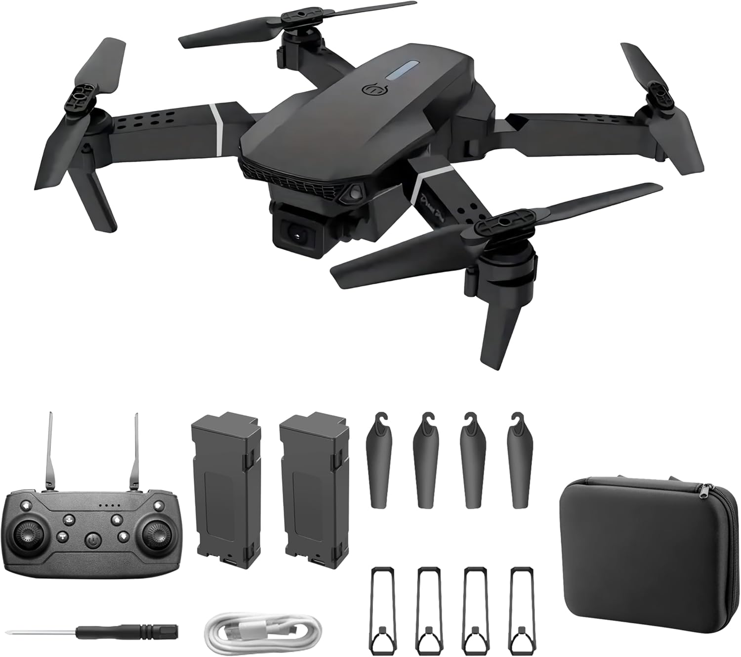 E88 Drone With Dual Camera, Mobile App Control, Indoor Flying Toy RC Plane With Video Function - Ideal Gift For Beginners, Christmas Halloween Thanksgiving Birthday Gift (Black Dual Batteries)