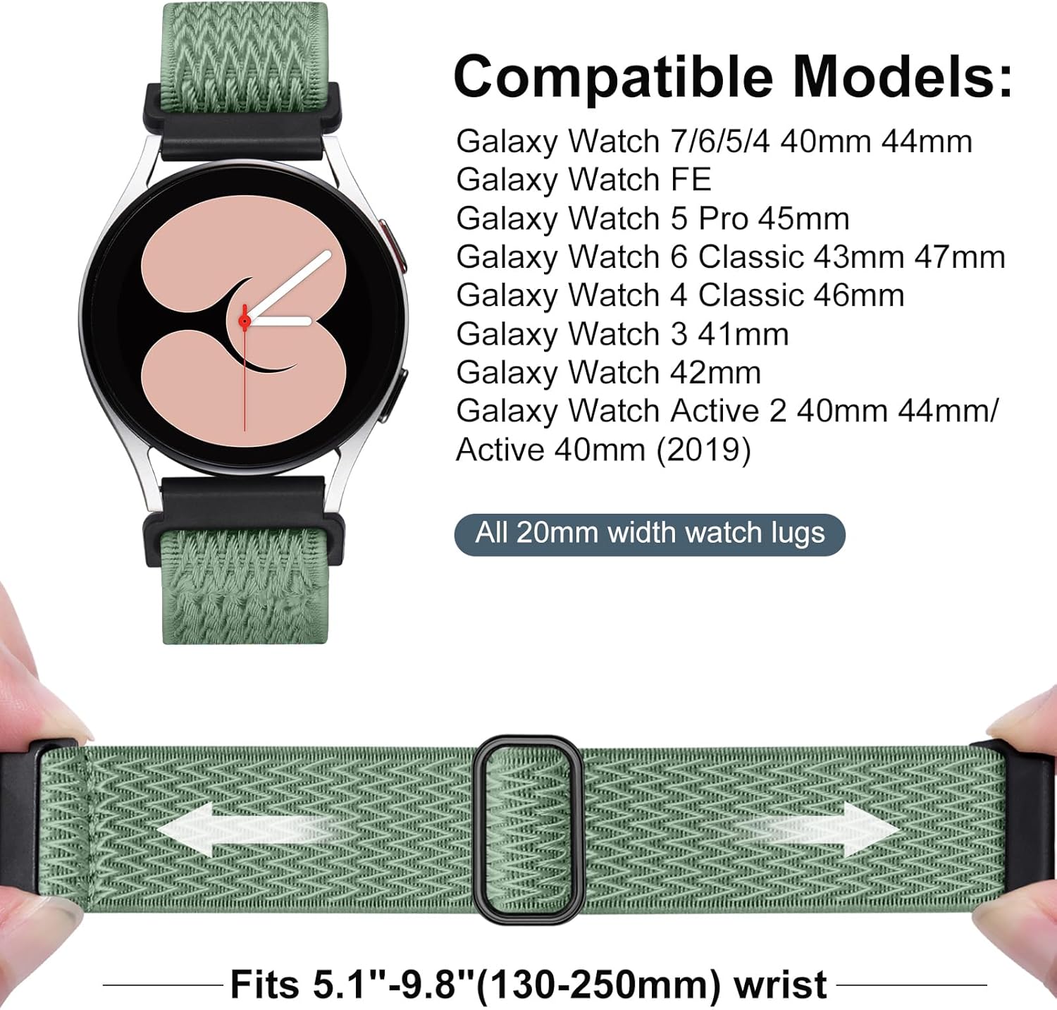 ✅【Compatibile with all 20mm Watch Models】Compatible with Samsung Galaxy Watch 7/6/5/4/FE 40mm 44mm, Galaxy Watch 5 Pro 45mm, Galaxy Watch 6 Classic 47mm 43mm, Galaxy Watch 4 Classic 46mm 42mm, Galaxy Active 2 44mm 40mm, Galaxy Active 40mm, Galaxy Watch 3 41mm, Galaxy Watch 42mm, Gear Sport/S2/S2 Classic, as well as Garmin Vivoactive 4/3/HR, Garmin Forerunner 645/245, Garmin Venu, Ticwatch 2/E/C2, Gizmo Watch, and other watches with 20mm width lugs