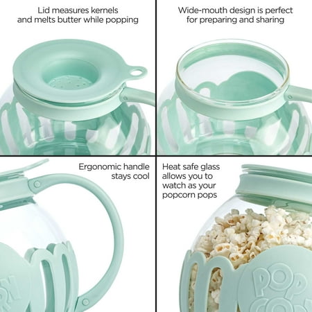 Ecolution Patented Micro-Pop Microwave Popcorn Popper with Temperature Safe Glass, 3-in-1 Lid Measures Kernels and Melts Butter, Made Without BPA, Dishwasher Safe, 3-Quart, Aqua