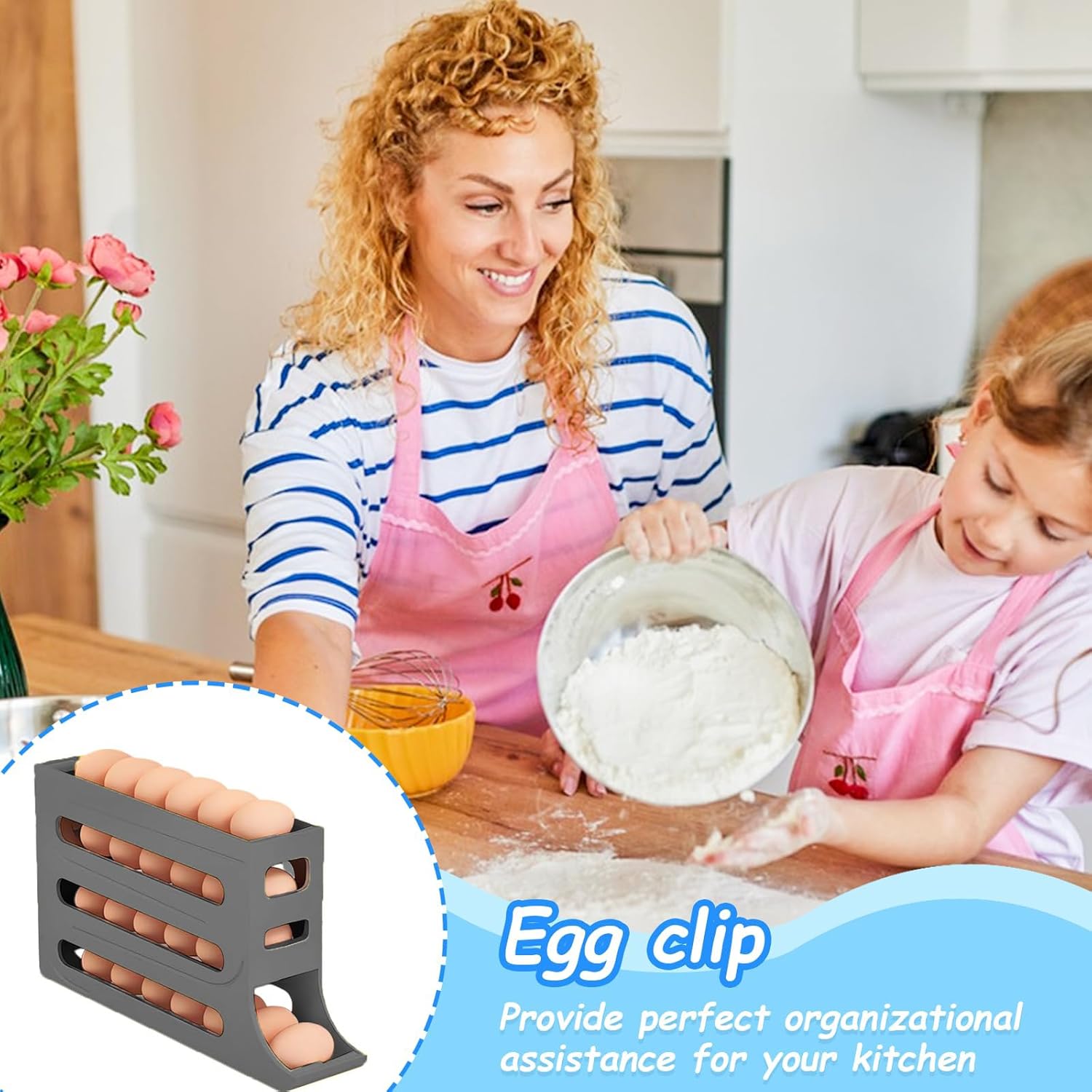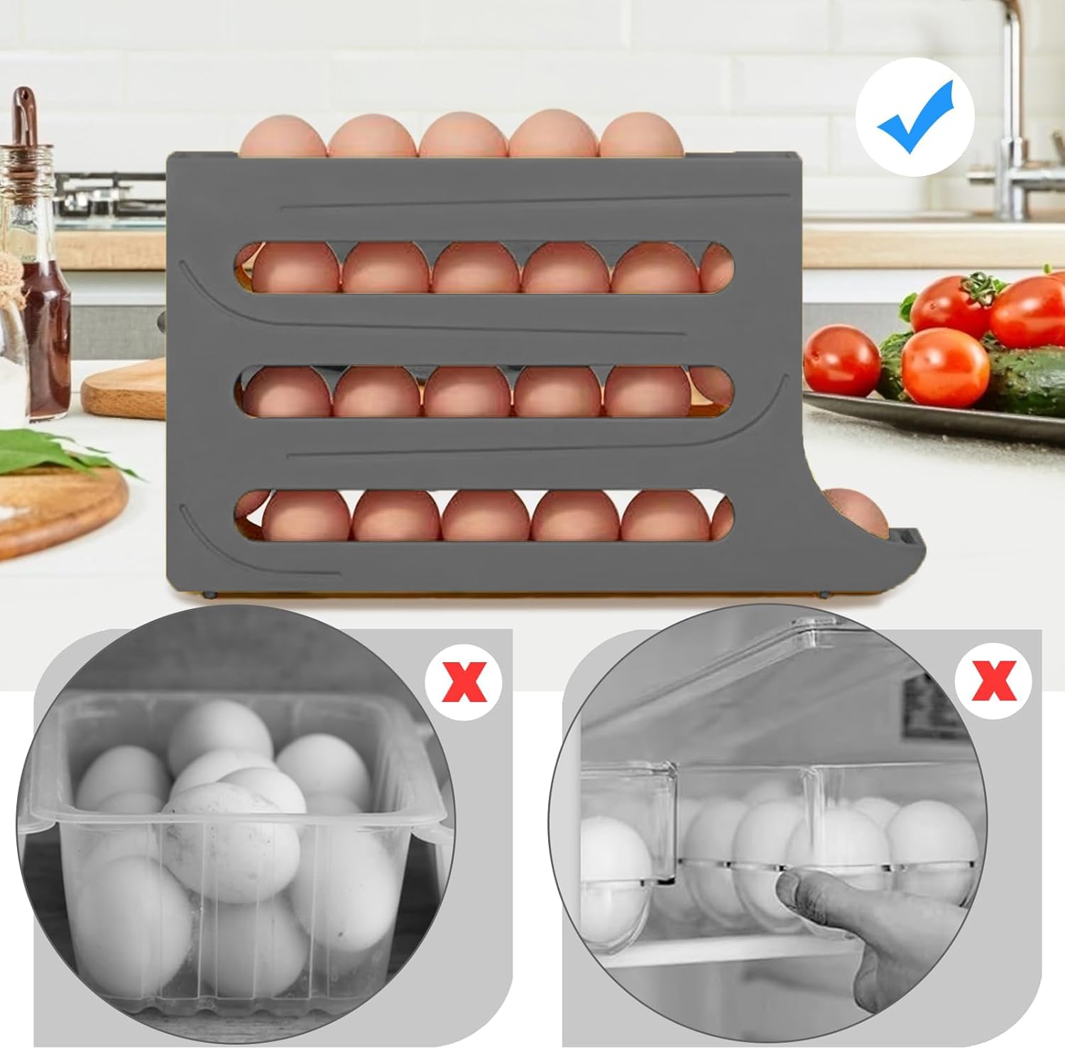 [Organization]: Our Egg Storage Box for Refrigerator is a egg tray that offers an innovative automatic egg rolling feature. It's great for organizing your duck and chicken eggs in the kitchen.