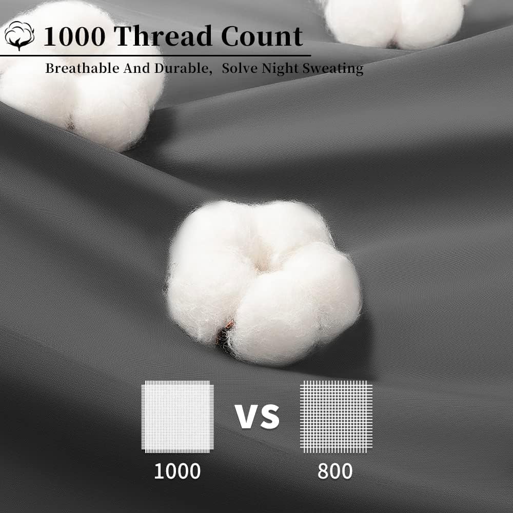 Egyptian Cotton Queen Size Bed Sheets Set - 1000 Thread Count, 100% Cotton Sheets,Soft Smooth and Wrinkle, 16-Inch Deep Pocket - 4 Piece(Dark Gray, Queen)