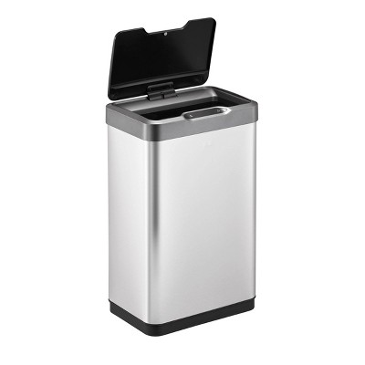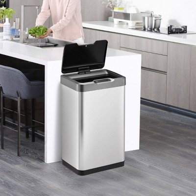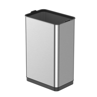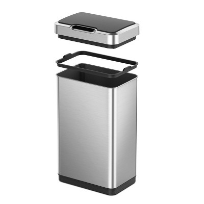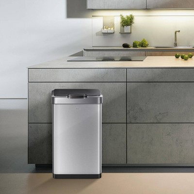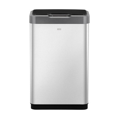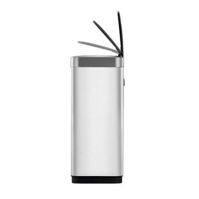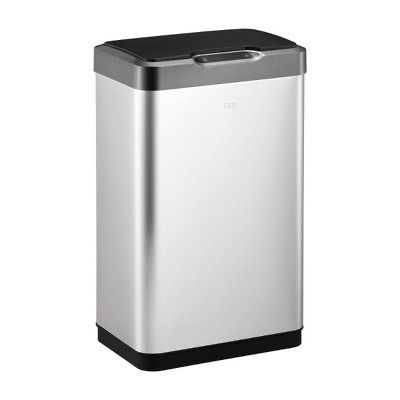 The stylish EKO Mirage-T Motion Sensor kitchen trash can operates with an intelligent sensor that opens when, and only when, you want it to. And a simple touch switch will hold the lid open for longer when required. Offering the convenience of hands-free operation, this can fits flush against your wall or cabinet. The fingerprint-resistant brushed stainless steel finish matches any home decor, and is eay to maintain with the wipe of a soft damp cloth. The soft close design provides a quiet, gentle closing. No liner design allows standard kitchen trash can capacity while taking up less room, and the removable liner rim holds the trash bag in place. Uses standard 13 gallon kitchen trash bags. 50 liter / 13.2 gallon capacity. Requires 4 AA batteries, not included.