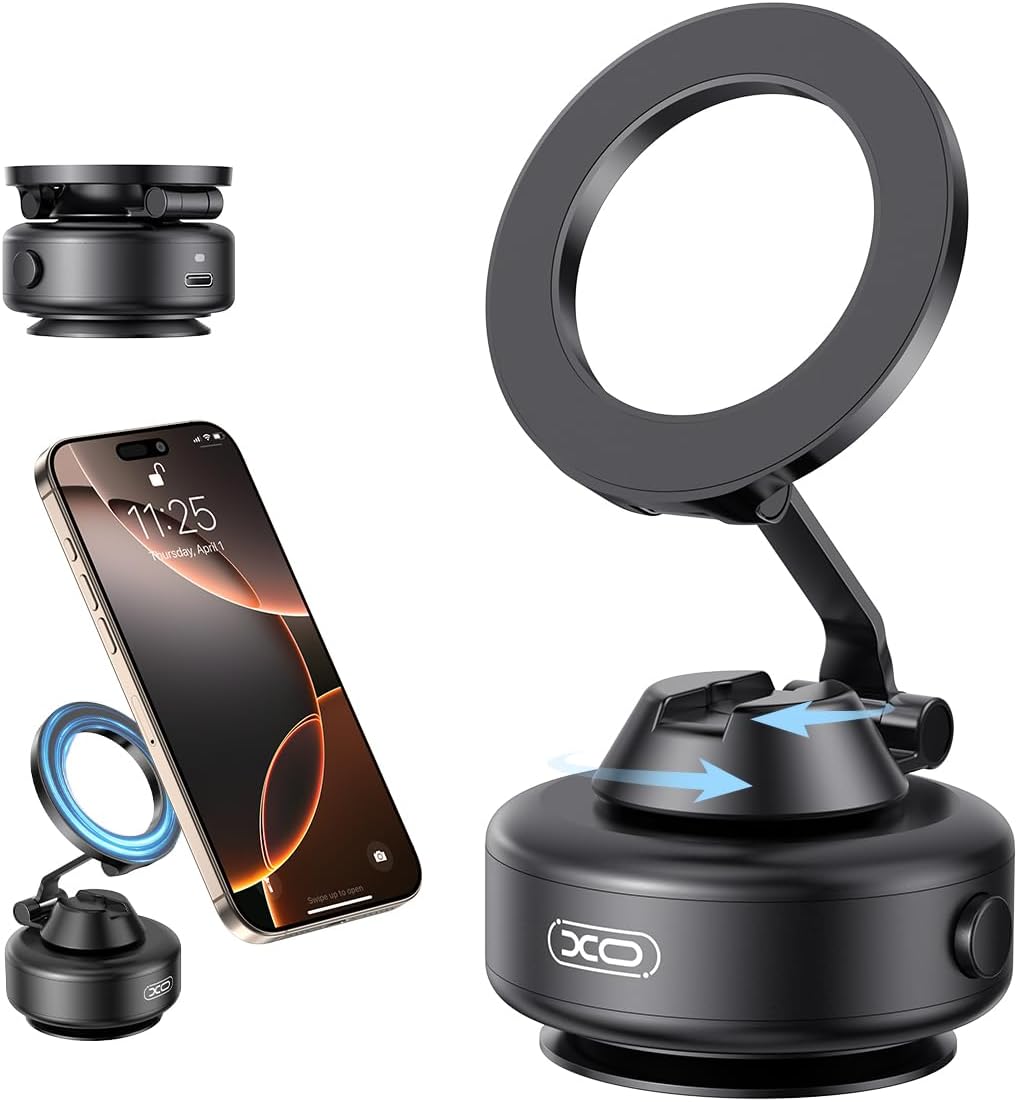 Strong Magnetic Grip & Instant Attachment: Vacuum suction phone holder features a powerful N52 magnet for a secure, one-handed snap-on connection. Holds your phone firmly even on bumpy roads, ensuring it stays in place during sharp turns or sudden stops.❌Notes:This magnetic car phone holder does not charge phone
