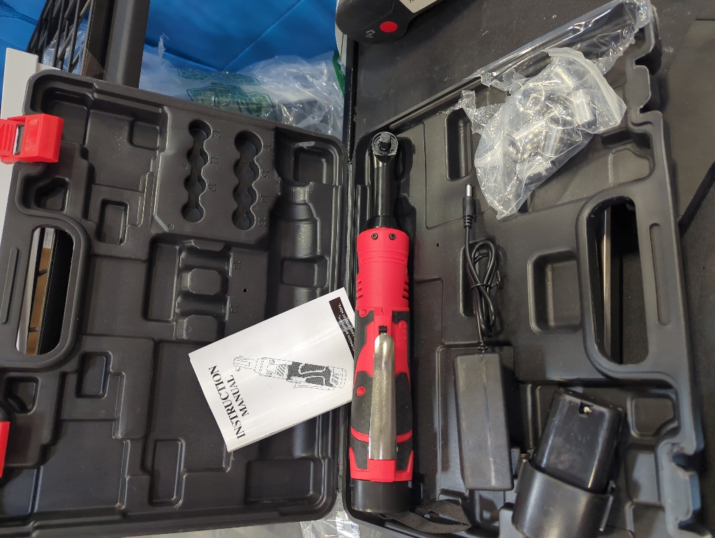 Electric Ratchet Wrench Kit: You will get 1*Electric Ratchet Wrench, 1*Carrying Case, 1*Quick Charger, 2*2000 mAh Batteries, 7*Sockets Wrench(10/11/12/13/14/15/17mm). Has provided you with an all-you-need Ratchet Wrench Work Kit.