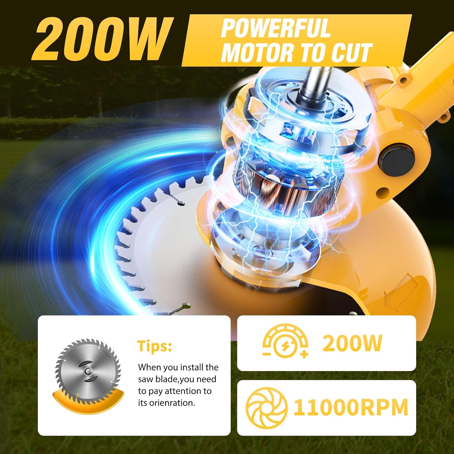 Electric Weed Wacker Cordless Grass Trimmer with 2x2000mAh Batteries & Fast Charger