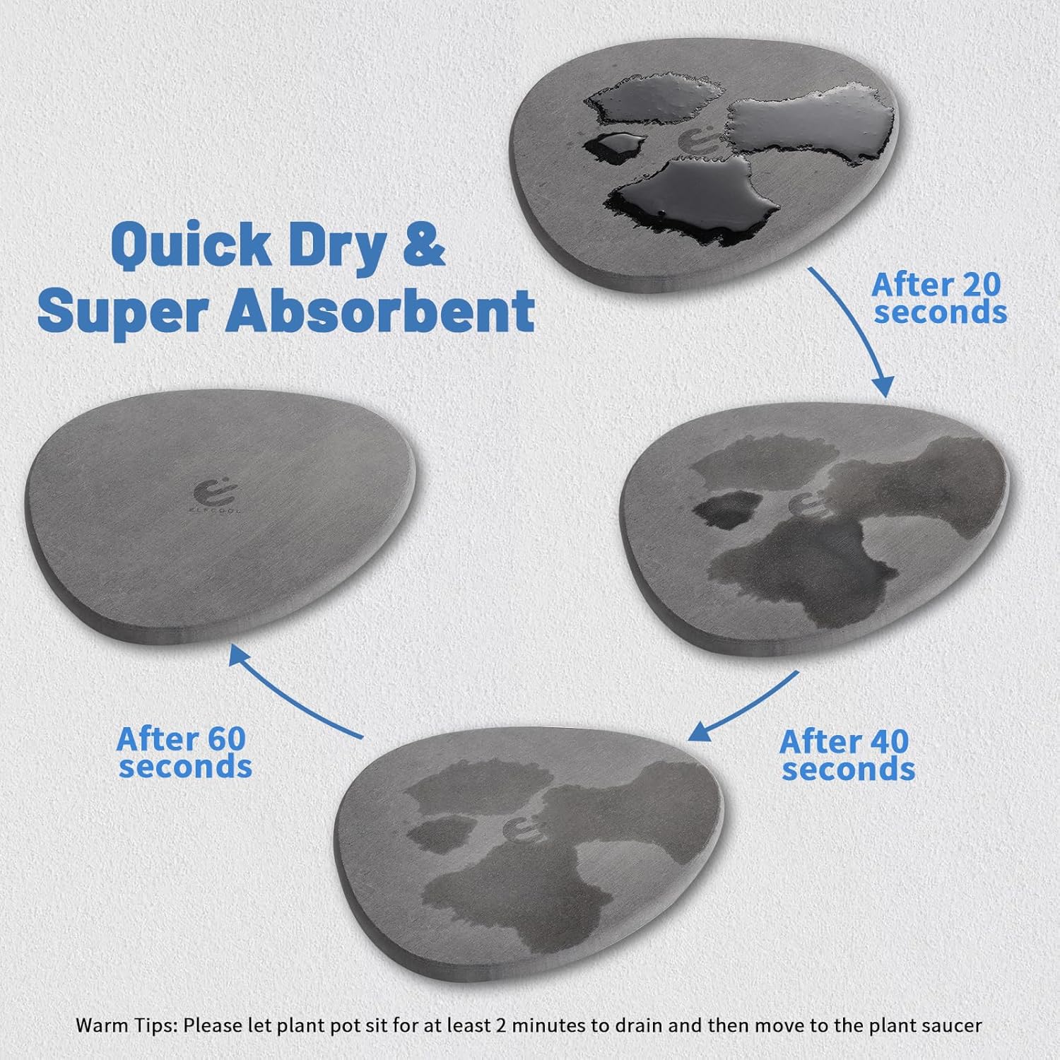 Instant Dry & Absorbing: Made of organic diatomaceous earth and recycled pulp fibers, under pot plant tray can absorb dripping and spilled liquid in seconds, to protect the floor, table and furniture away from wetting and damage effectively