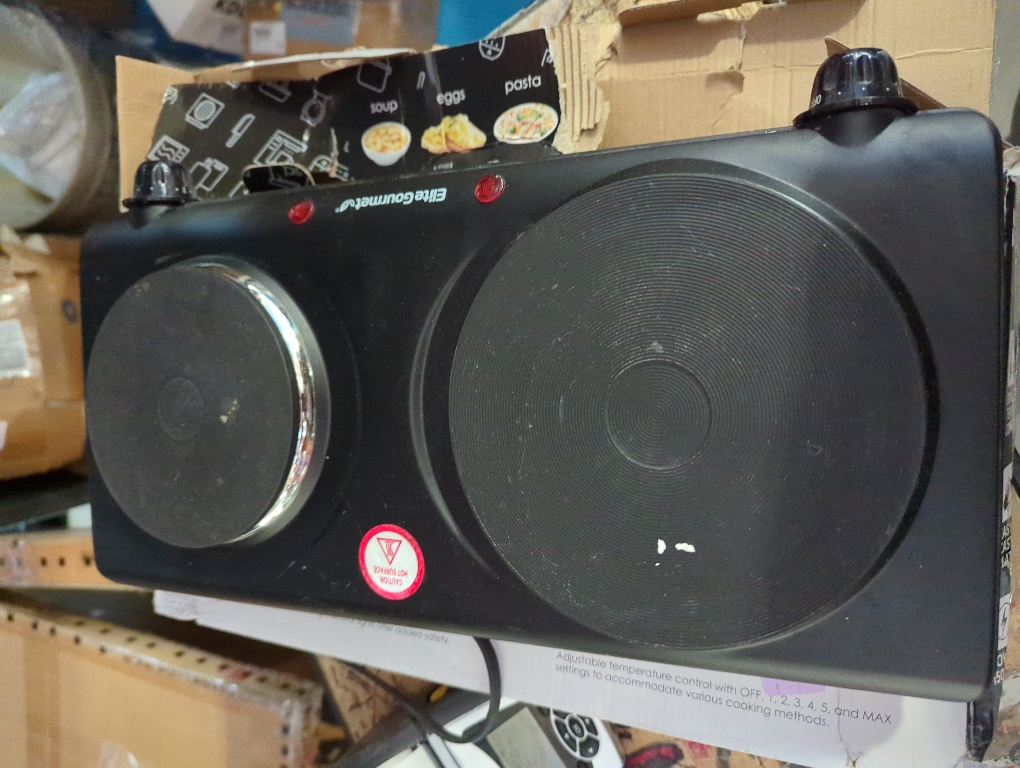 Elite Gourmet EDB-302BF# Countertop Double Cast Iron Burner, 1500 Watts Electric Hot Plate, Temperature Controls, Power Indicator Lights, Easy to Clean, Black