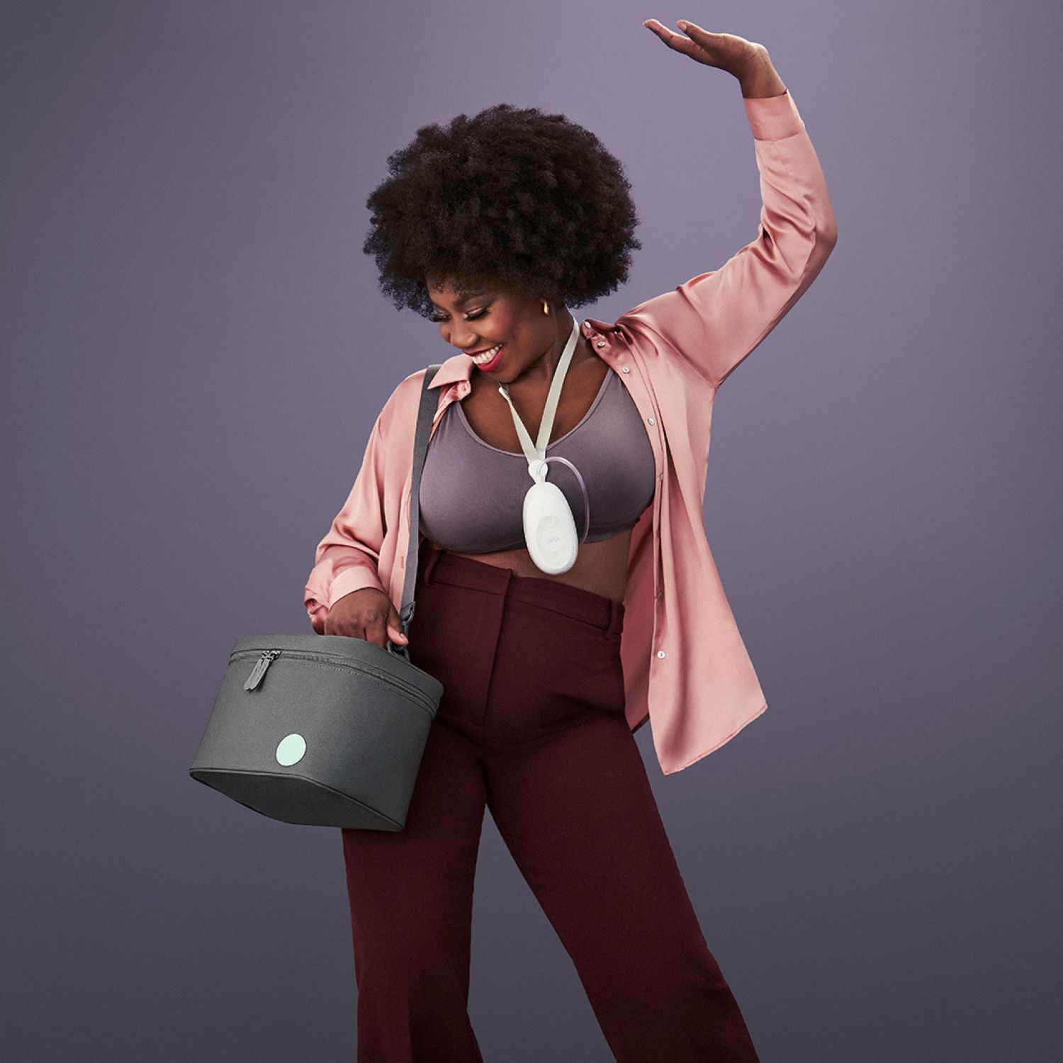 Make parenting a little bit easier with this Elvie Stride Plus Hands Free Breast Pump with Carry Bag.