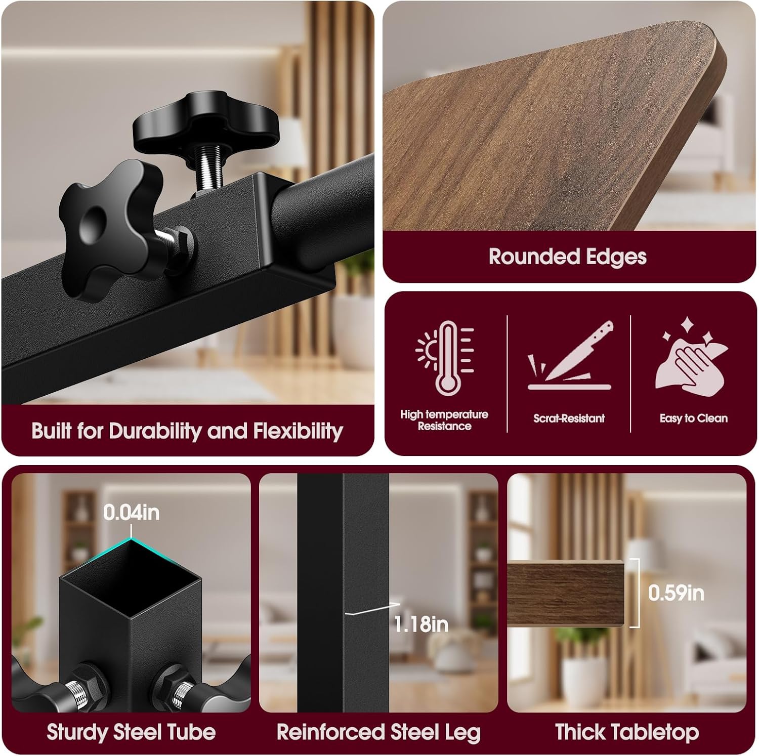 fits snugly by your sofa, bed, or chair, maximizing accessibility while saving floor space. Adjustable Height for Versatile Use- The Pedestal side table adjusts from 17” to 31” in height, offering flexibility for various uses, whether you’re on the couch, in bed, or anywhere 360° Rotating & Sturdy Build- The nightstand tabletop rotates freely for personalized angles, supported by a sturdy steel frame and a 0.59-inch thick top that holds up to 50 lbs Quick and Effortless Assembly- With included tools and clear instructions, assembly is simple and can be completed in just minutes, so you can start enjoying its functionality right away.