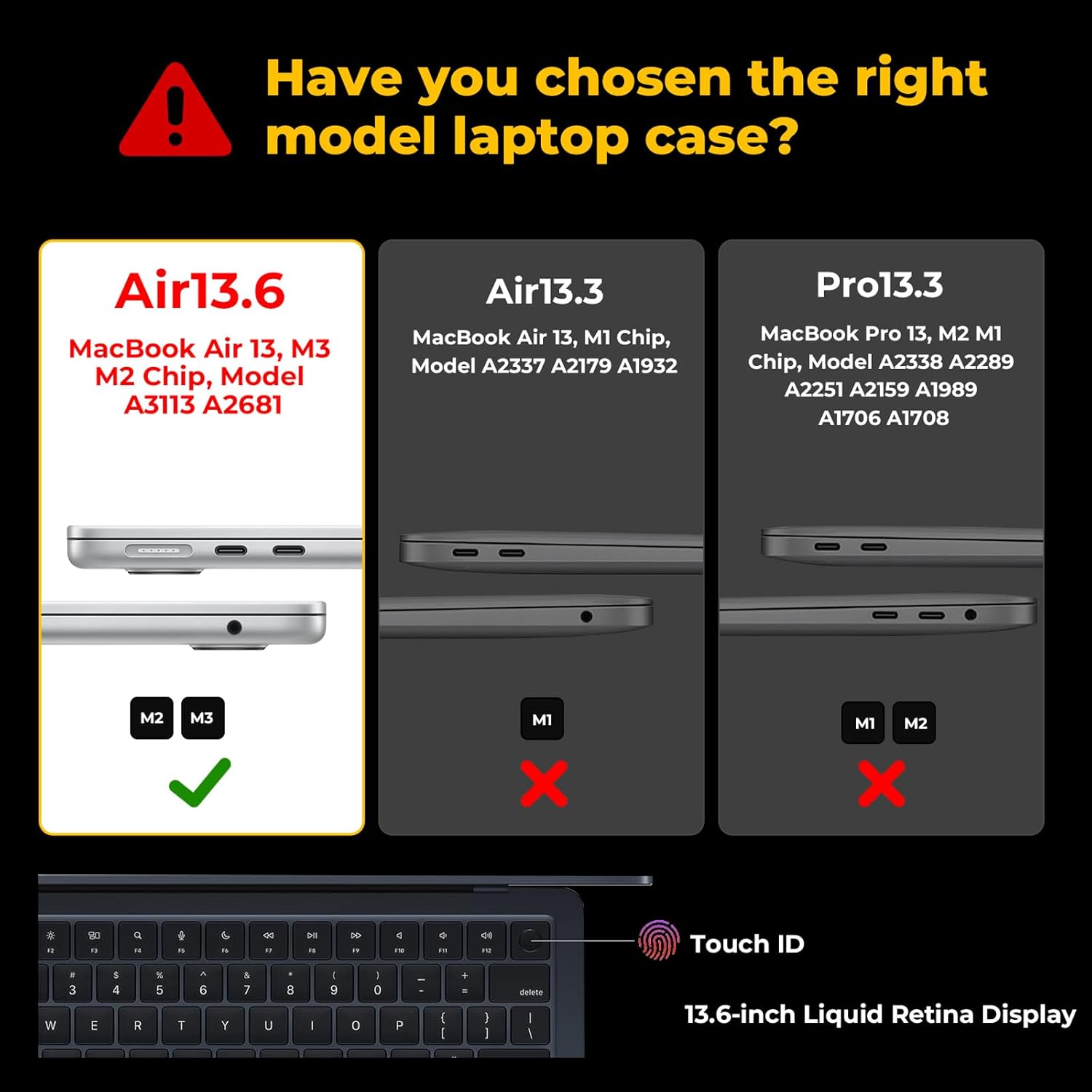 Perfect Fit and Slim Profile: Only compatible with MacBook Air 13 inch case M4 M3 M2 2025 2024 2023 2022 Release with Liquid Retina display & Touch ID (model number: A3240 & A3113 & A2681- MC6T4LL/A, MW123LL/A, MW0W3LL/A, MW0Y3LL/A, MW103LL/A, MW0X3LL/A, MW133LL/A, MC6U4LL/A, MC6V4LL/A, MC6C4LL/A, MC654LL/A, MC6A4LL/A, MRXV3LL/A, MRXQ3LL/A, MRXN3LL/A, MRXT3LL/A, MXCV3LL/A, MXCT3LL/A, MXCR3LL/A, MXCU3LL/A, MLXW3LL/A, MLXX3LL/A, MLXY3LL/A, MLY03LL/A, MLY13LL/A, MLY23LL/A, MLY33LL/A, MLY43LL/A)