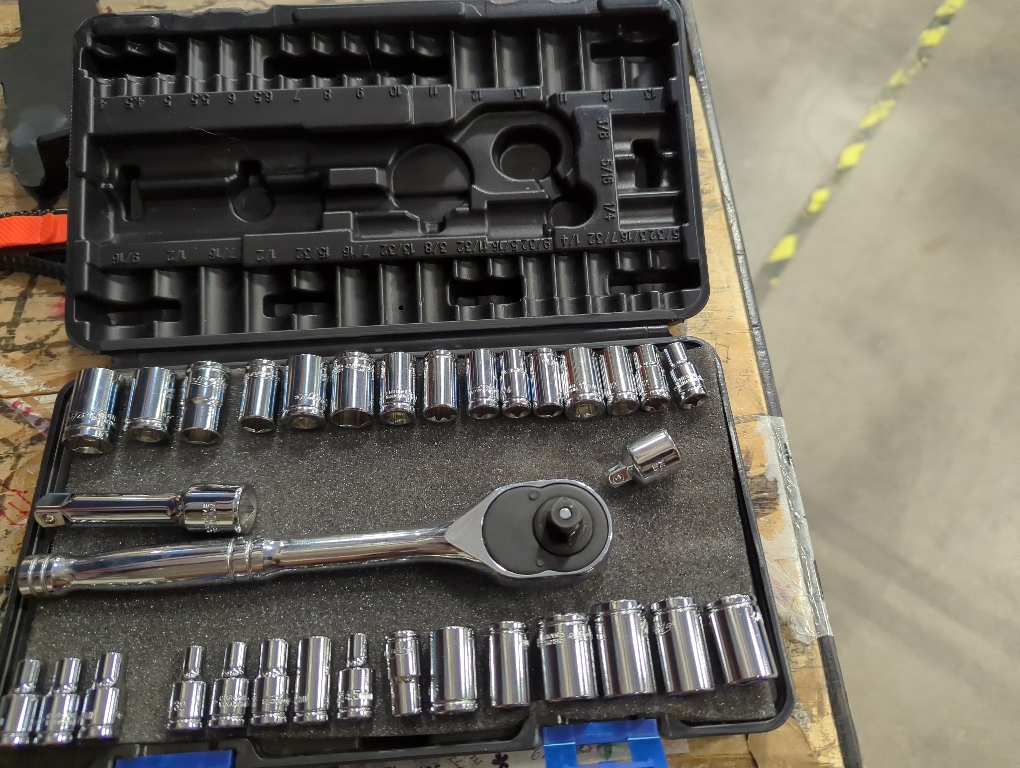 Both Metric and English sizes are included. 3/8” Reversible 72 Teeth Ratchet is included.