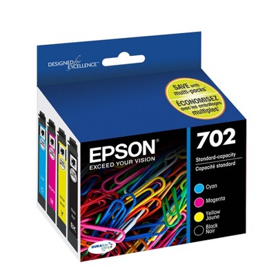 Epson 702 Black C/M/Y 4pk Combo Ink Cartridges - Black Cyan Magenta Yellow (T702120-BCS)