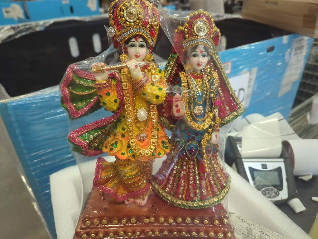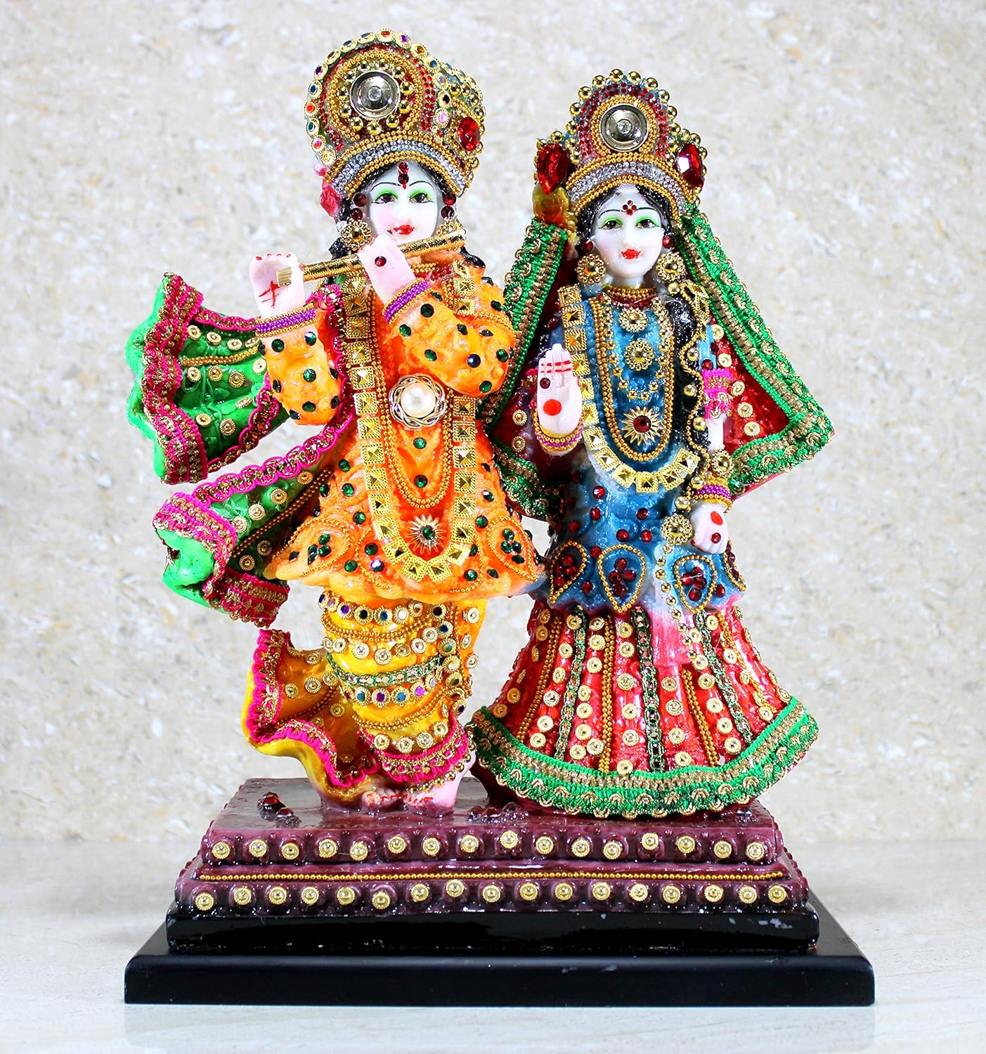 new Open box for inspection Lord Radha Krishna statue idol, made using 100% solid Resin for your Home/ Workplace/ Office/ Desk/ Counter etc.
