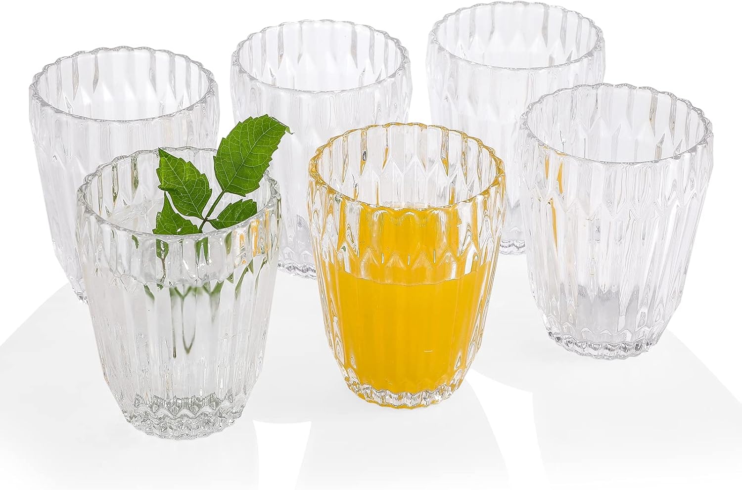 Everest Global Orogami Juice Glasses 9.3 oz. set of 6 from 1500 C Tabletop Stripe Cup Old Fashion Tumbler Antique European Style woman Drinking Water Glassware Whiskey Iced-tea Beverage Milk Soda Coke for Home