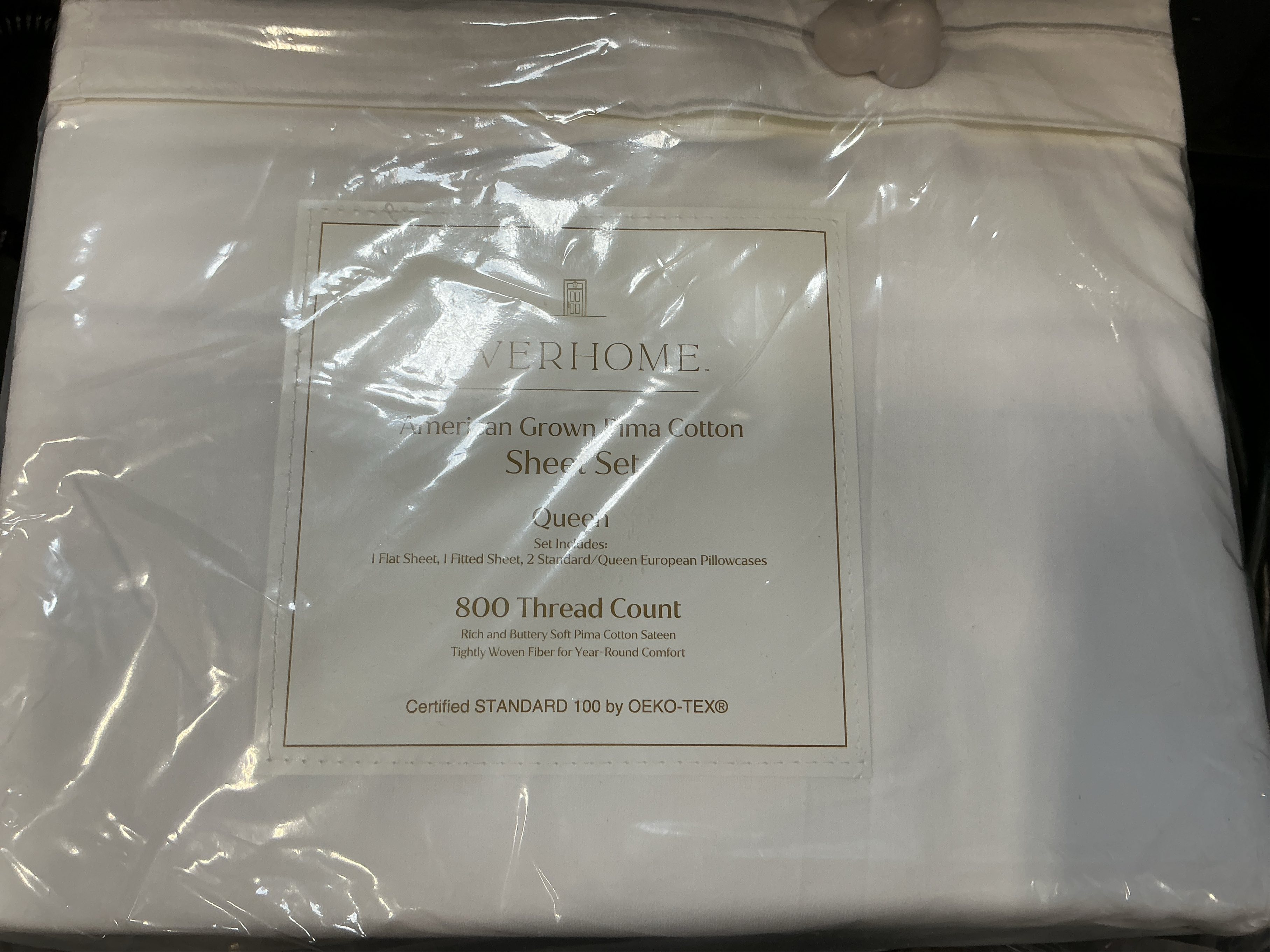 3. Everhome PimaCott Sateen Embroidered 800-Thread-Count Queen Sheet Set in Microchip