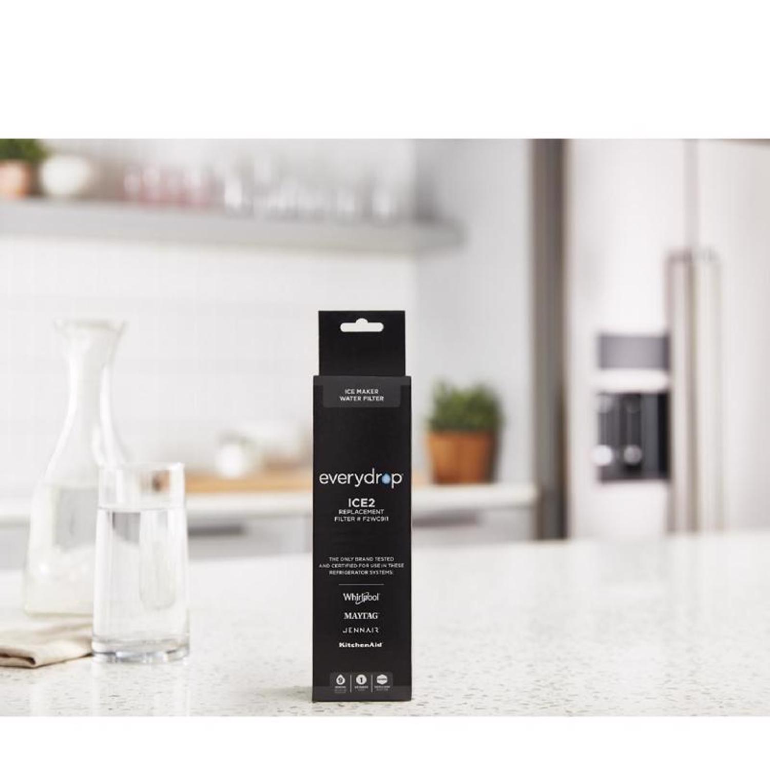 This Everydrop ice filter is used in 50 lb. ice makers. Replace every 2,000 gallons (7571 liters) or 9 months to ensure clean safe drinking water. The contaminants or other substances removed or reduced by this water filter are not necessarily in all user's water.