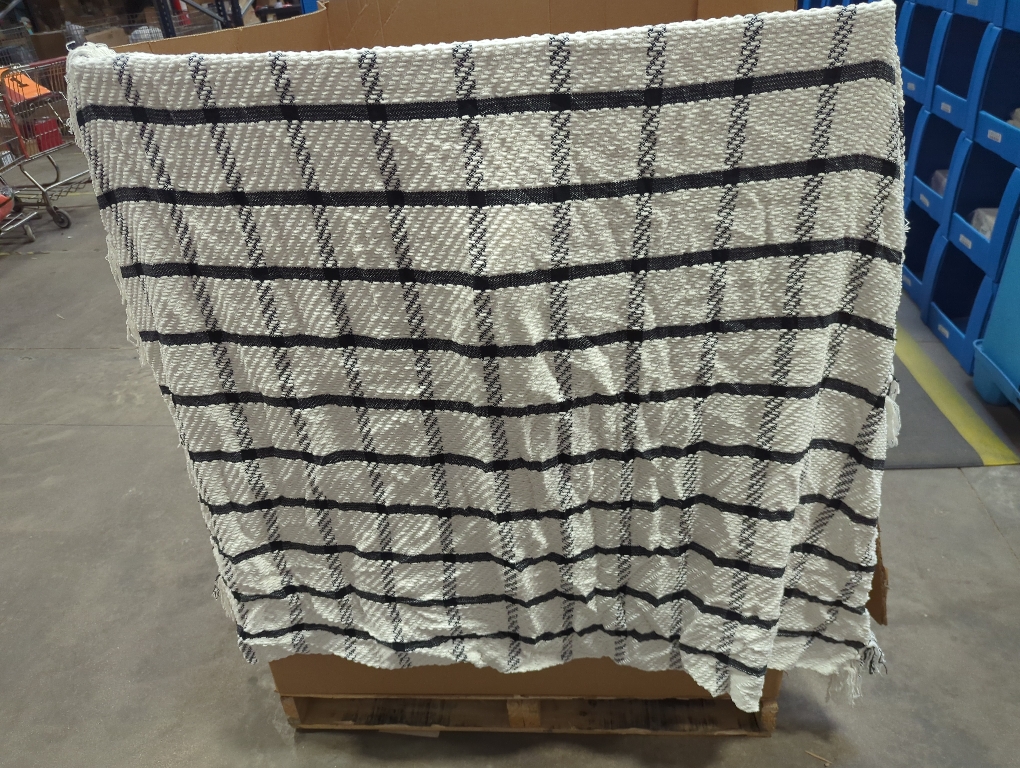 Farmhouse Breathable Soft and Warm Chenille Plaid Throw Blanket for Sofa Couch Bed, Home Decoration Throw with Tassles (Black & White)