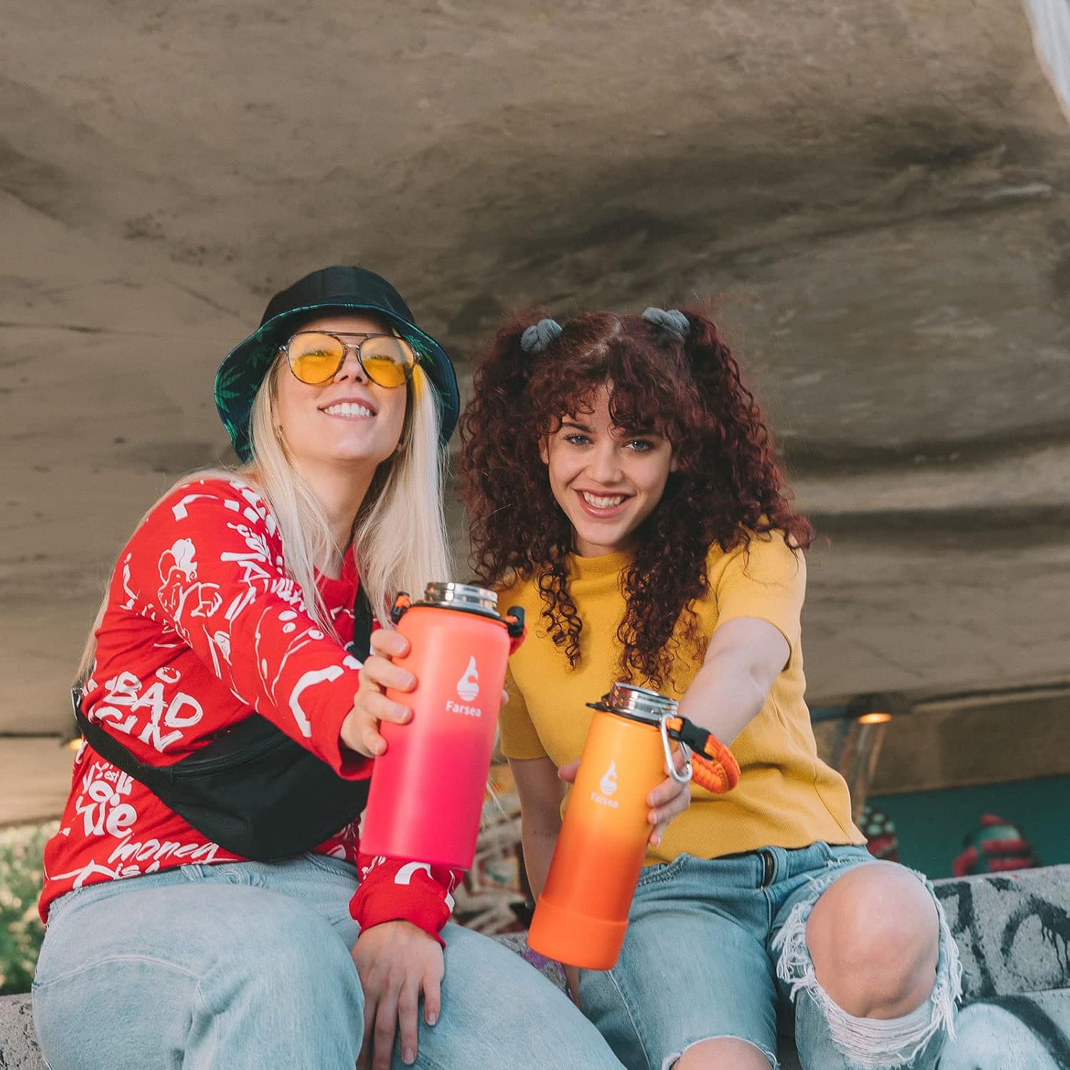WHAT YOU'LL GET: Farsea is committed to providing the best value and highest quality to the customers; We offer Continuous After-sales Service and Solve All Problems; We offer several different capacity bottles(12 oz, 18oz, 24 oz, 32 oz, 40oz) and you can choose according to your needs; Package: Comes with 2 lids (Straw lid & Spout Lid), paracord holder, protective Silicone Boot, nice packing box, 2 straws, and straw brush