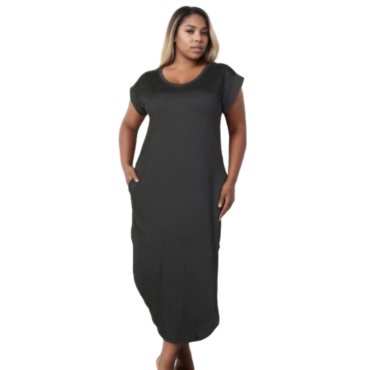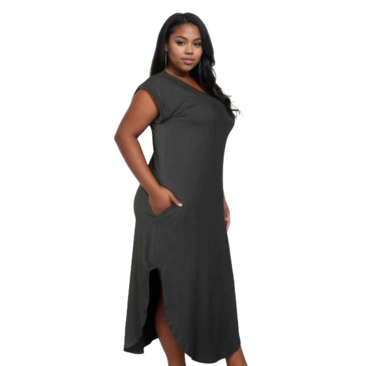 - Our Plus Size Hidden Pocket Batwing Sleeve V Neck Long Dress is the perfect choice for fashion-forward individuals who value both style and comfort.