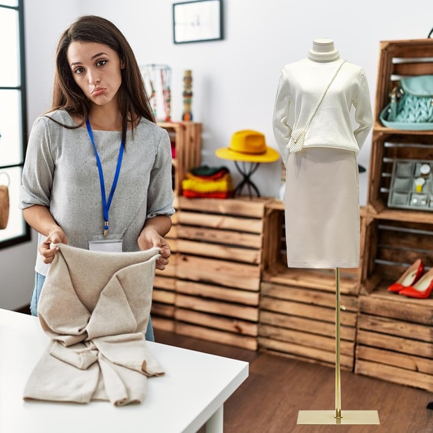 DISPLAY ACCESSORIES: You can use our female mannequin dress form to display your products at windows, counters, tiered displays or at the floor. Great for sweaters, t-shirts, jackets, dresses, pants, shirts and tops, you can also put your shoes at the base for easy at and off