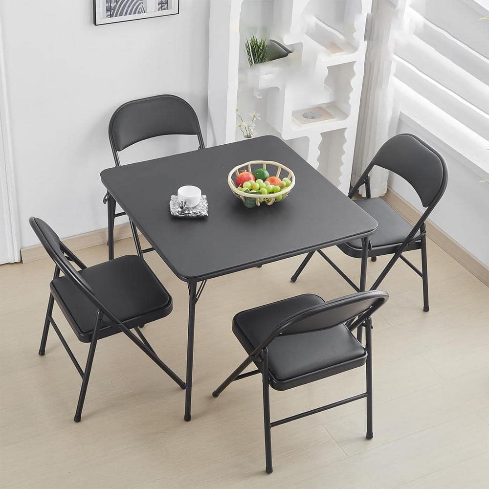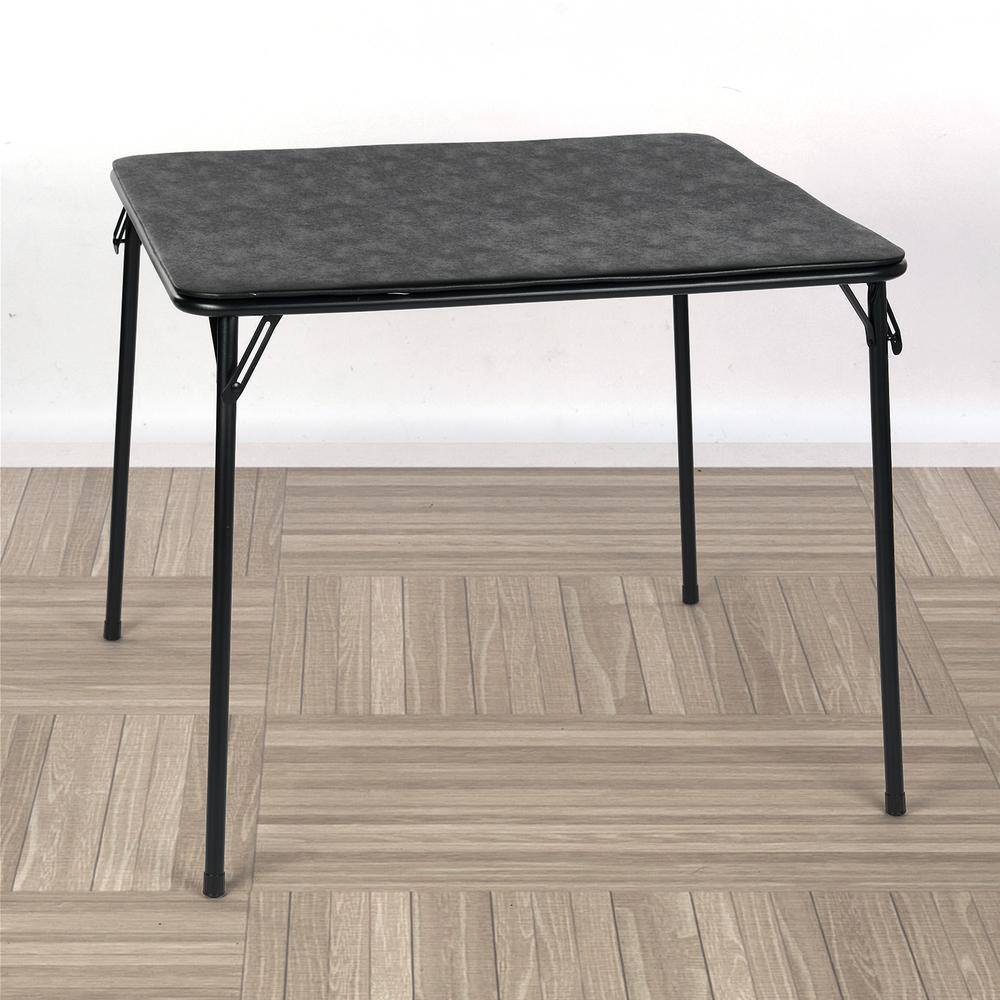 Maximize your space without sacrificing style with the fern folding dining table. Featuring a sleek black finish and a durable PVC MDF board top, this table is designed for both modern aesthetics and practicality. Its space-saving design makes it the perfect fit for smaller spaces such as apartments, home offices, or patios. With a metal frame and sturdy 4 legs, it provides a solid surface while being lightweight and easy to move. No assembly required, simply unfold it and enjoy immediate use. Plus, it folds down for compact storage, making it an excellent choice for both residential and commercial use. Whether for dining, working, or outdoor gatherings, the fern table offers a versatile and convenient solution for any setting.. Assembly Required: Assembly Not Required. Color Family: Black. Color/Finish: Black. Commercial Use: Residential. Features: No Additional Features. Finish Family: Black. Frame Material: Metal. Interior Furniture Type: Dining Table. Product Weight (lb.): 12 lb. Returnable: 30-Day. Seating Capacity: Seats 4. Shape: Square. Table Base Type: 4 Legs. Table Extension: Fixed. Table Height (in.): Standard Height (30-34 in.). Top Material: Plastic. Weight Capacity (lb.): 120 lb. Product Height (in.): 28 in. Product Length (in.): 33.9 in. Product Width (in.): 33.9 in. Seating Capacity: Seats 4. Table Extension: Fixed. Product Length (in.): 33.9 in. Finish Family: Black. Table Base Type: 4 Legs. Shape: Square. Frame Material: Metal. Commercial Use: Residential