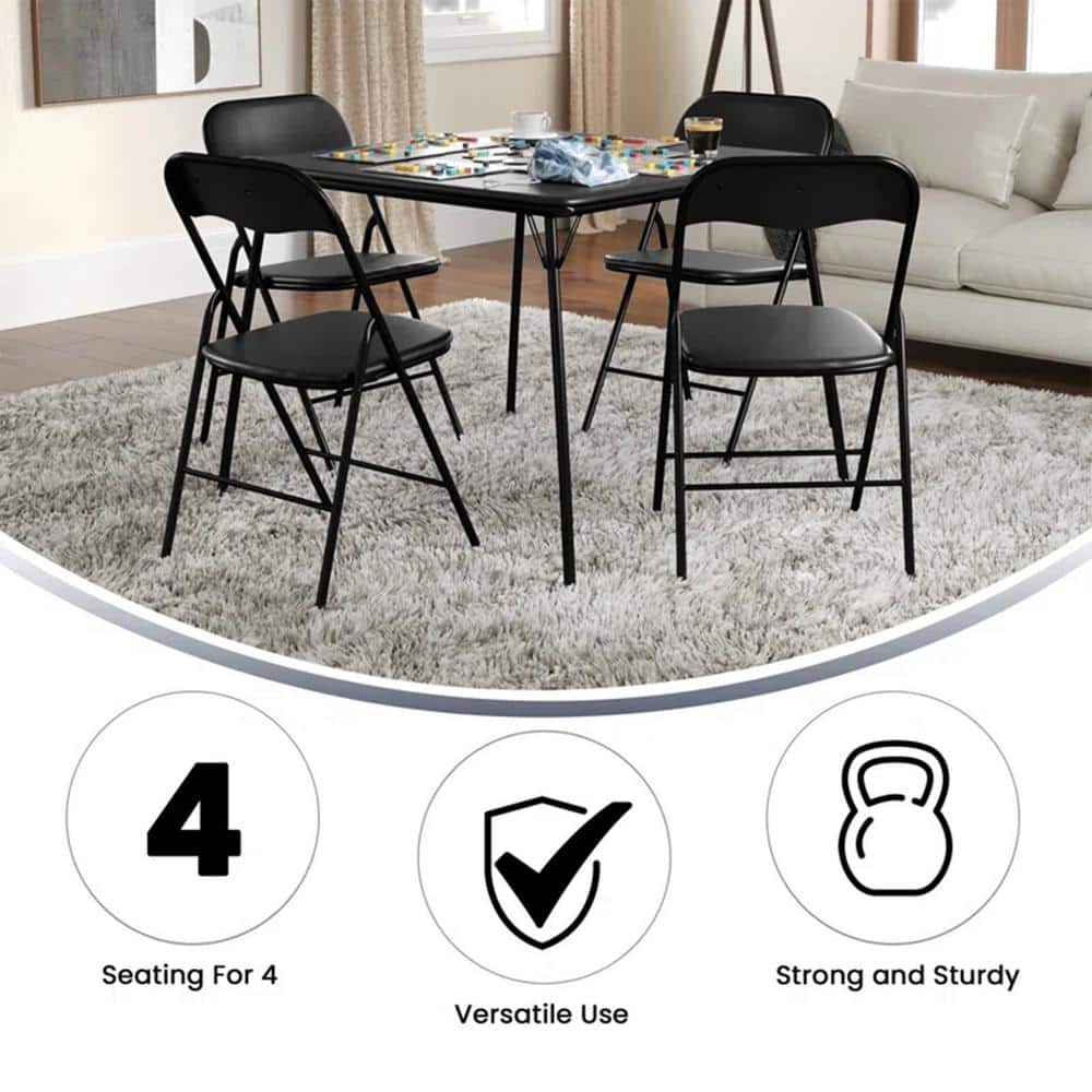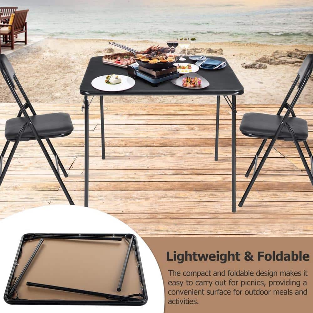 FERN Modern Square Black Plastic Tabletop Folding Table 33.5 in. 4 Legs Dining Table, No Assembly, Seats 4