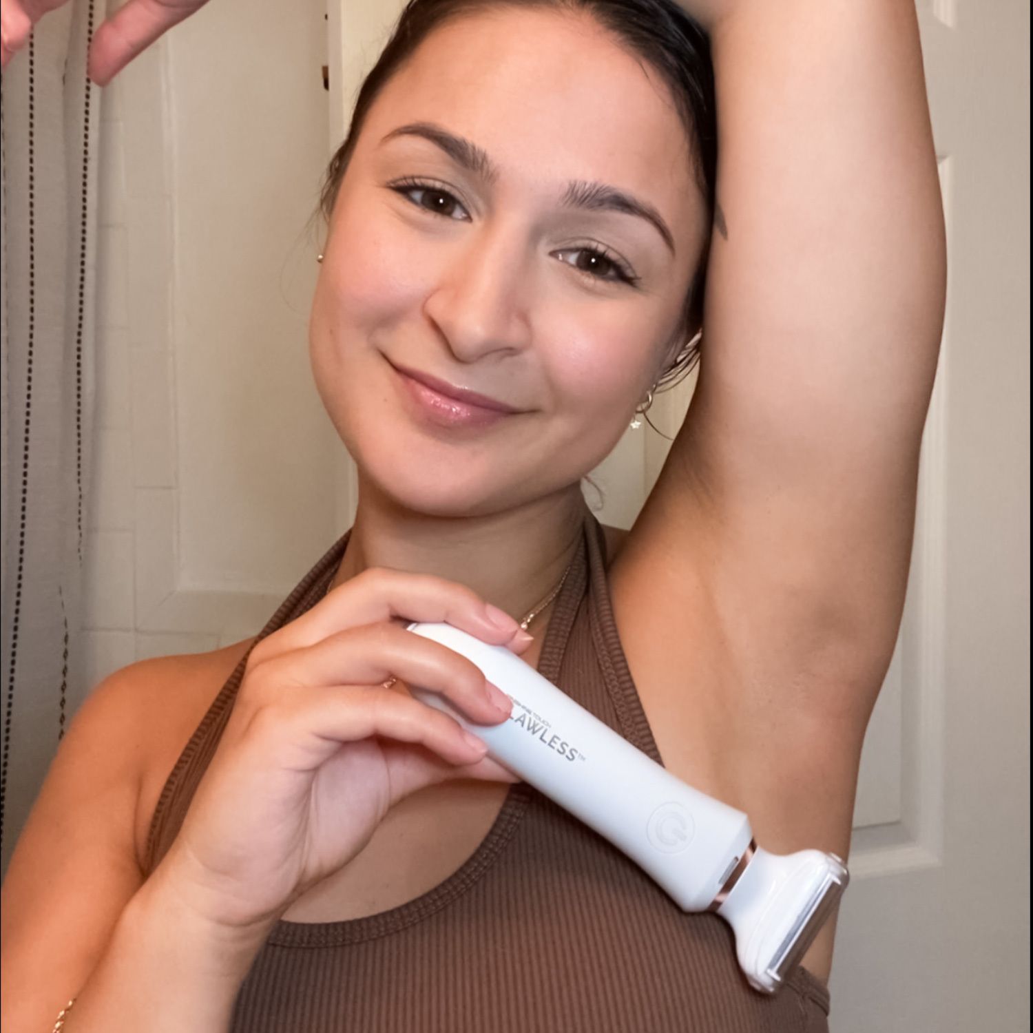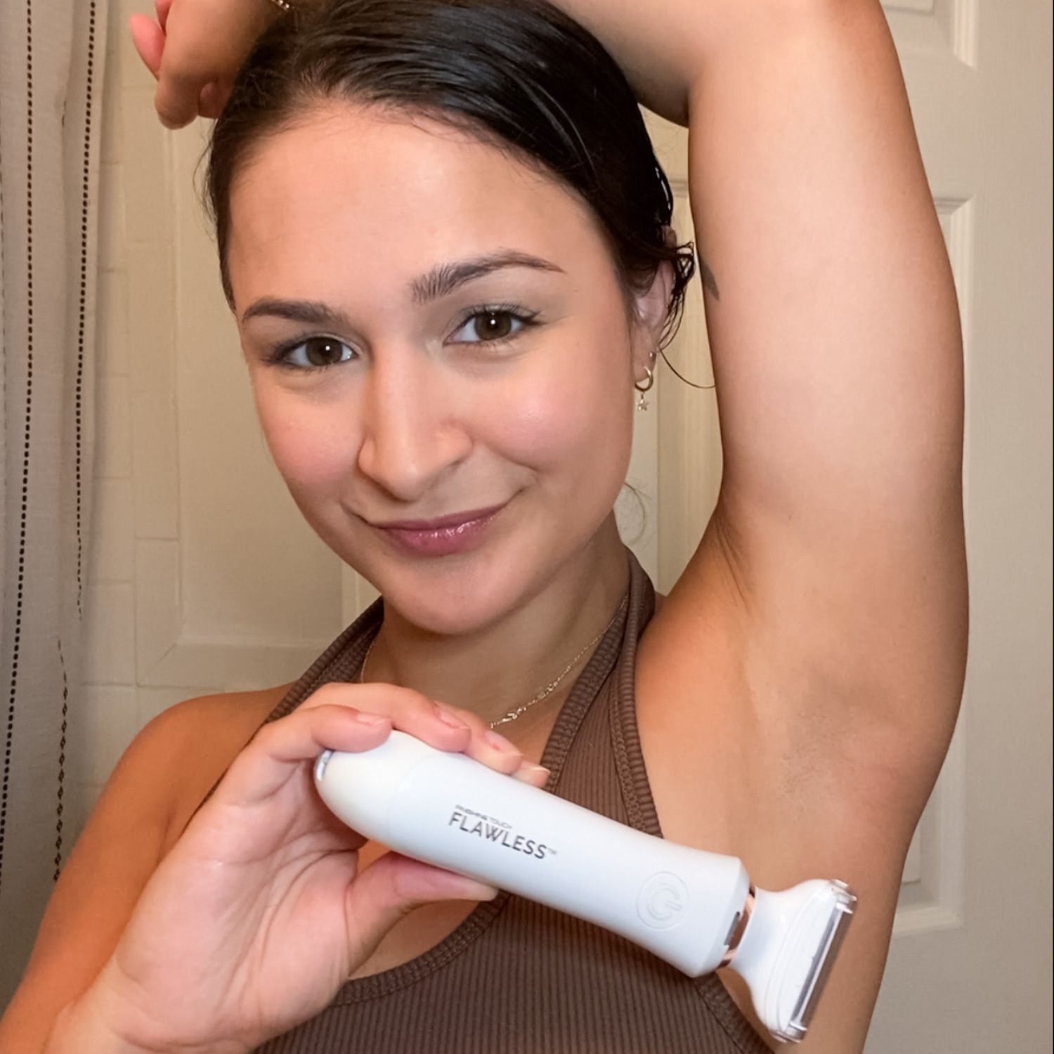 Specially designed for the contour of a woman's underarm, the Finishing Touch hair remover delicately removes hair without nicks, bumps, cuts or ingrowns.