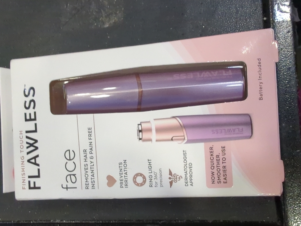 Finishing Touch Flawless Facial Hair Remover for Women is the revolutionary facial hair removal device that erases hair easily, effectively and painlessly. Enjoy smooth, hairless skin without the redness, irritation or nicks, cuts or bumps that come with shaving. Made with an easy-to-hold design, this womens’ electric razor is ideal for removing peach fuzz, middle brows, cheek, chin and upper lip hair, or used as an eyebrow trimmer. The Flawless face hair trimmer is dermatologist recommended, hypoallergenic and helps makeup apply more smoothly and skin care products to absorb faster. To use, insert the included AA battery, remove the cap and slide the switch of the electric face razor to on. Gently press the hair removal device flat against your skin and make small, circular movements. Revolutionary Butterfly Technology with over 60% more blades than previous versions of Finishing Touch Flawless Facial Hair Remover removes unwanted hair under an 18 karat gold-plated head, never touching delicate facial skin. This facial hair remover is designed to look like a tube of lipstick and is fitted with an LED light, so you can bring it anywhere you go for discreet and precise hair removal anytime. Always be Flawless.