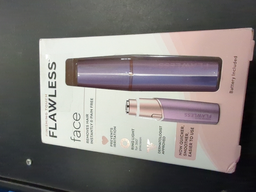 Finishing Touch Flawless Facial Hair Remover for Women is the revolutionary facial hair removal device that erases hair easily, effectively and painlessly. Enjoy smooth, hairless skin without the redness, irritation or nicks, cuts or bumps that come with shaving. Made with an easy-to-hold design, this womens’ electric razor is ideal for removing peach fuzz, middle brows, cheek, chin and upper lip hair, or used as an eyebrow trimmer. The Flawless face hair trimmer is dermatologist recommended, hypoallergenic and helps makeup apply more smoothly and skin care products to absorb faster. To use, insert the included AA battery, remove the cap and slide the switch of the electric face razor to on. Gently press the hair removal device flat against your skin and make small, circular movements. Revolutionary Butterfly Technology with over 60% more blades than previous versions of Finishing Touch Flawless Facial Hair Remover removes unwanted hair under an 18 karat gold-plated head, never touching delicate facial skin. This facial hair remover is designed to look like a tube of lipstick and is fitted with an LED light, so you can bring it anywhere you go for discreet and precise hair removal anytime. Always be Flawless.