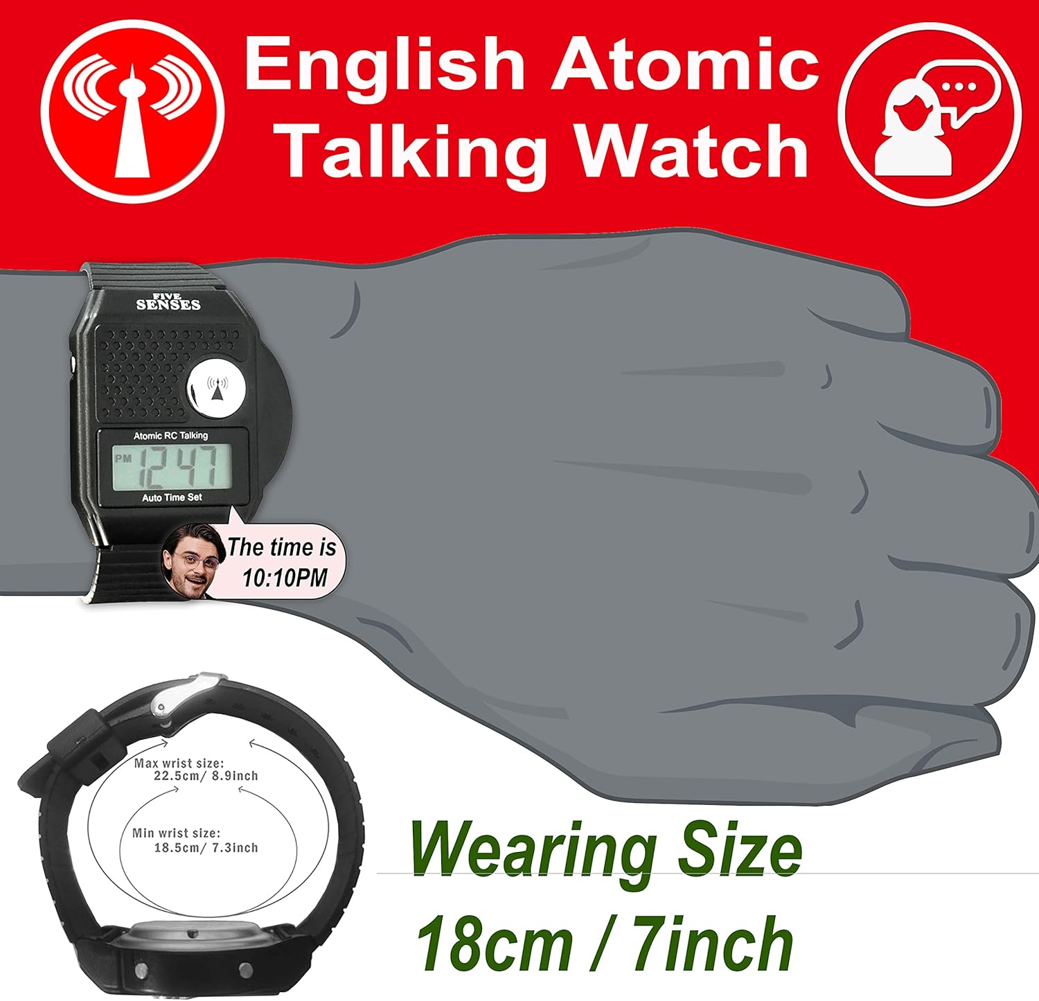 FIVE SENSES - English Atomic Talking Watch, Easy to use for Seniors Blind Men Women, Loud Talking Watch with Sound for Vision Impaired, Watches for Elderly Women, Blind People Products 1026