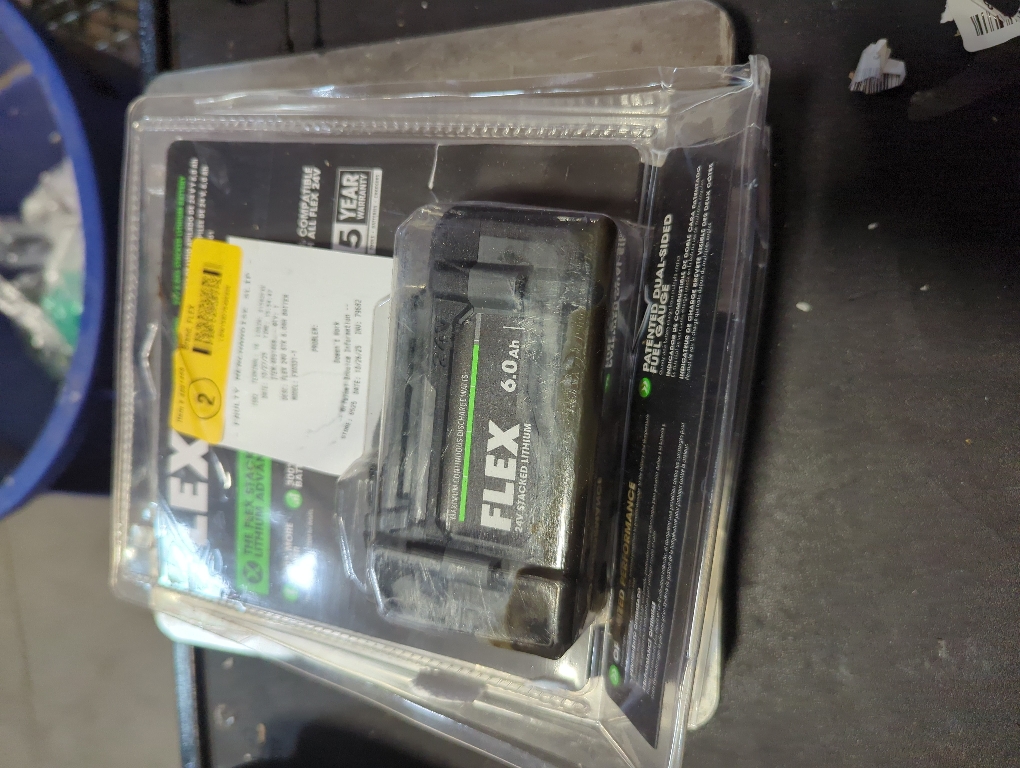 Damaged box open for inspection....The FLEX 24V Stacked Lithium battery platform offers industry-dominating power and performance. Its intelligent power management enables higher discharging, and it combines THERMA-TECH™ cooling technology with high-performance heat management protection to offer faster charging and a longer battery life to power through the workday.