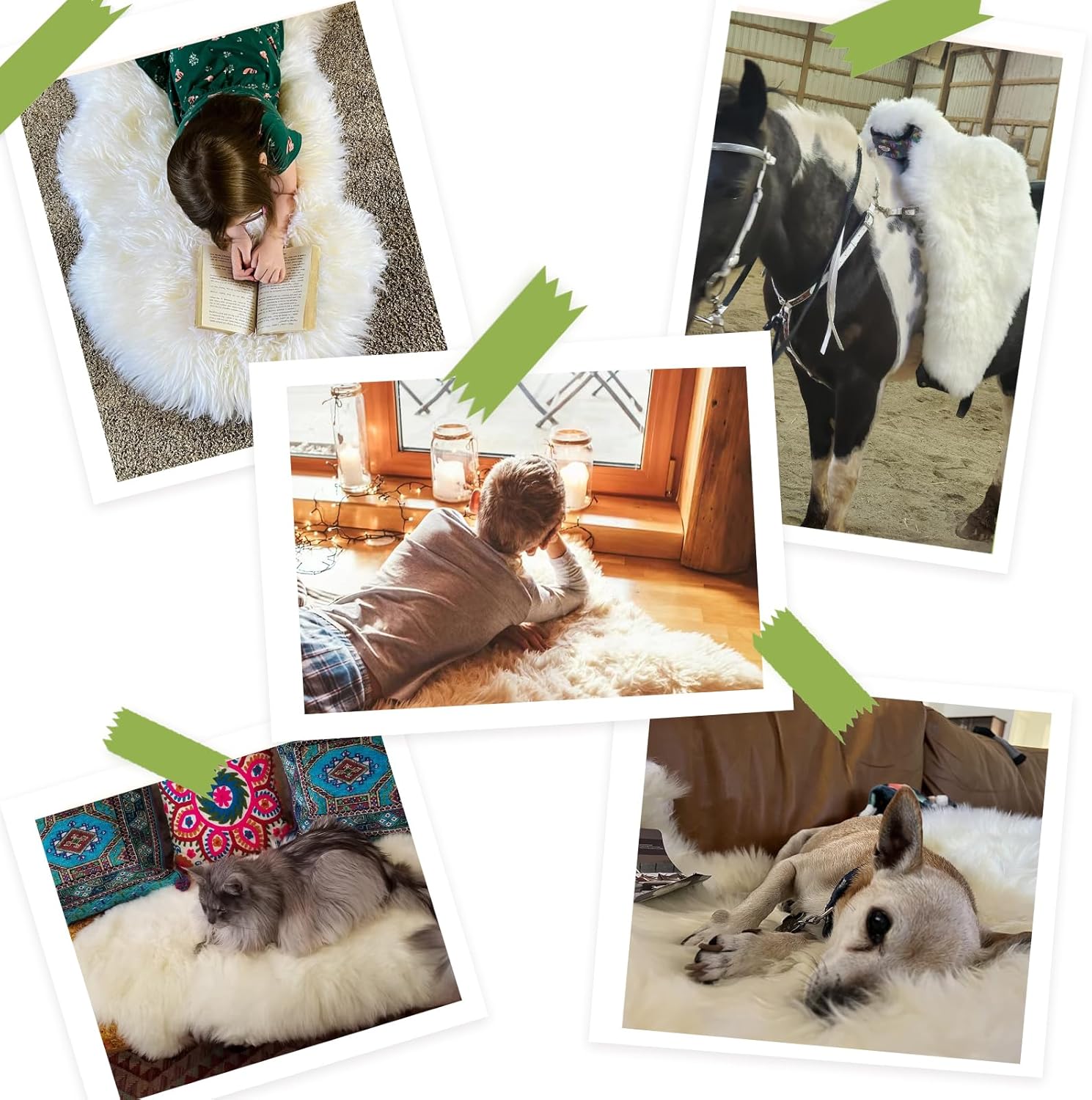 Security and Comfort, Keep Dry and Comfortable, Regardless of the Weather. And Hypo-allergenic. Not just for floors, the iconic sheepskin rug can be used as a bedspread, a throw, irregular rug, pup rug, Prayer Rug, fur chair cover or extra seating—indoors and out.