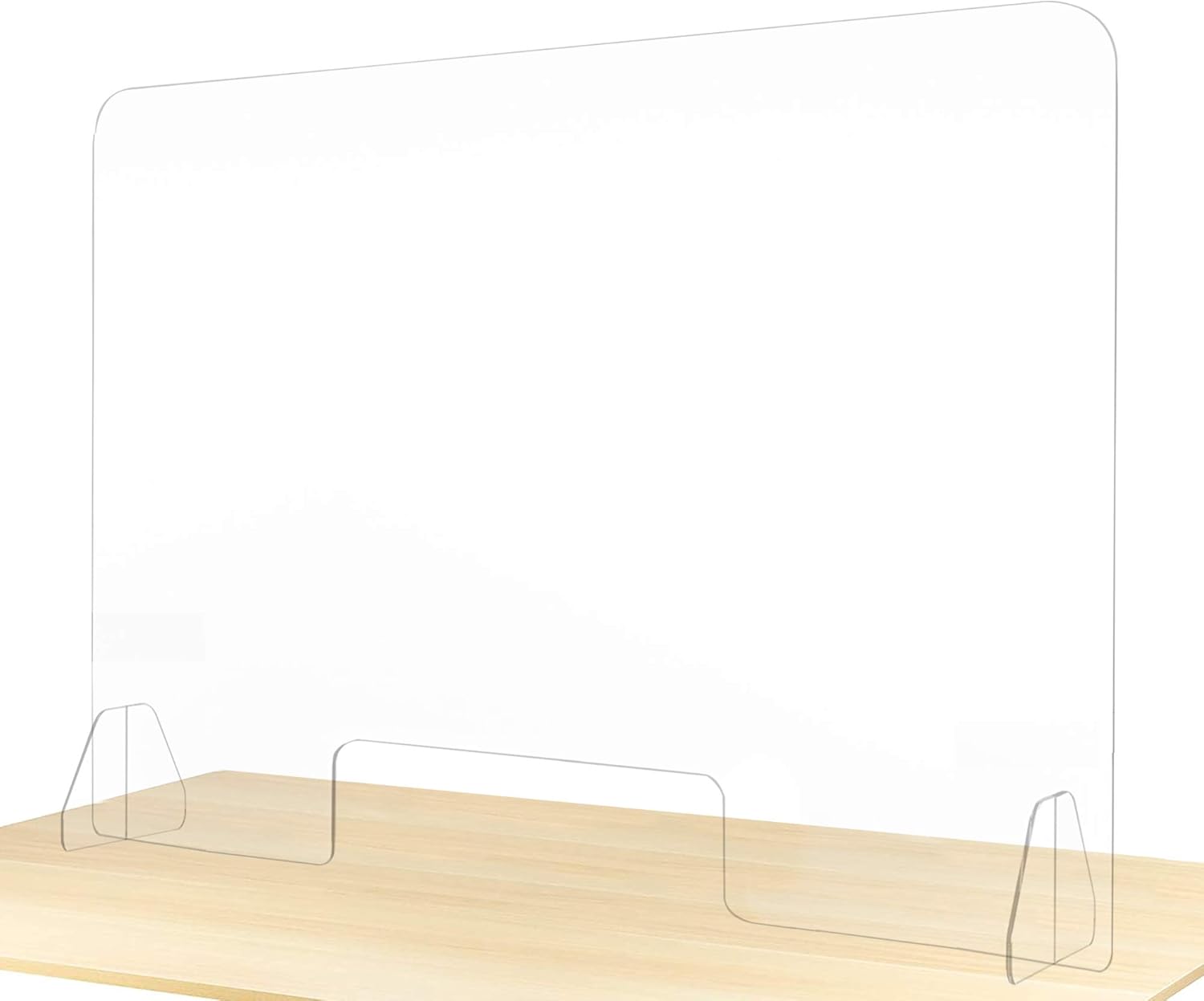 BUILT STURDY WITH A LARGE TRANSACTION WINDOW Made of 1/4” thick sheet that doesn’t bend. Smooth beveled edges. Precision cut legs for wobble free use. Large 16”x 6” TRANSACTION WINDOW for easy transactions, larger than the 10” x 4” offered by other counter sneeze guard
