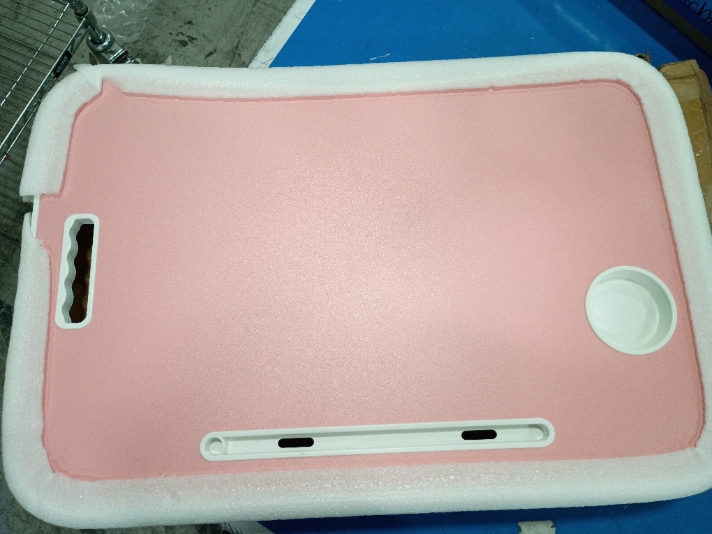 Humanized Design: All edges of the table top are molded in one piece, which makes it more durable and comfortable. It is equipped with a cup holder and tablet slot allows you to easily place your cup and iPad . Each leg has two anti-slip pads, even if you stay in a soft and slippery place, it will not shake or fall over.