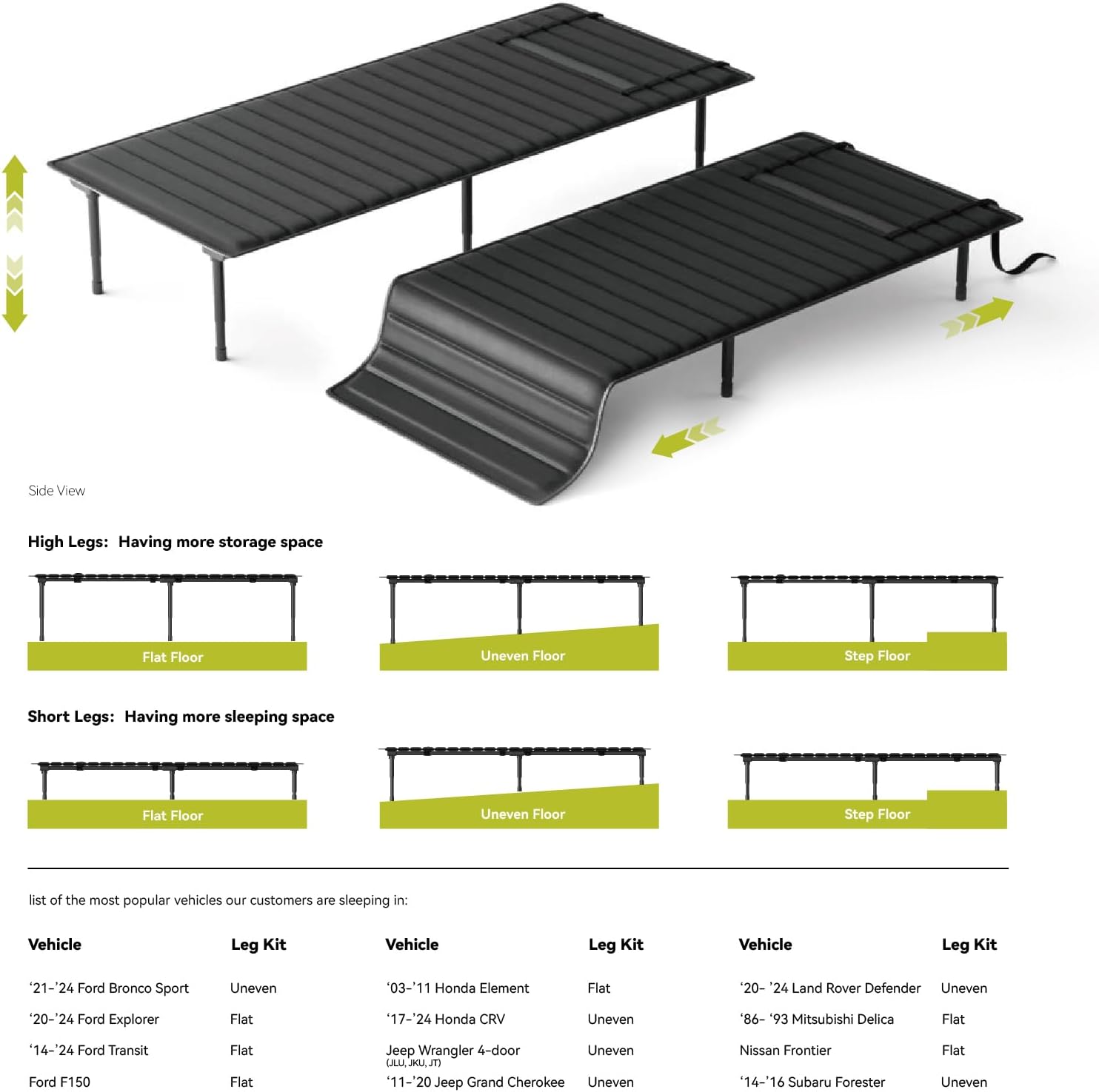 【Space-Saving Design】:The bed frame length is adjustable, perfectly fitting various car models. When folded, it becomes compact, effortlessly fitting into your trunk without taking up extra space.