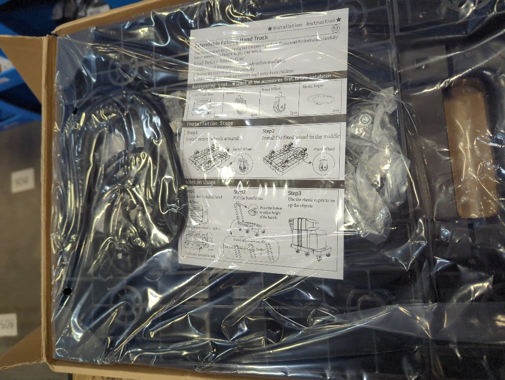 **Adjustable Platform 2 Elastic Ropes**: The dolly cart has an adjustable platform that can fit items of various sizes and comes with two elastic ropes for securing items during transport, adding flexibility and convenience