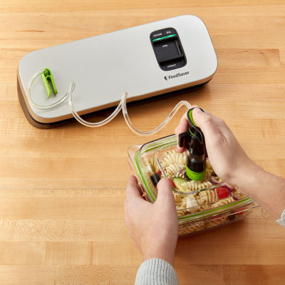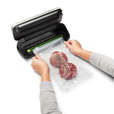 The FoodSaver Compact Food Vacuum Sealer lets you enjoy all the benefits of vacuum sealing in a new space-saving design! Featuring the same vacuum sealing power as traditional models, this compact vacuum sealer also features an innovative angled bag insertion opening so you can precisely align your FoodSaver bag to the machine's sealing strip—allowing for a perfect seal and less bag waste.Compact space-saving design saves 50% more space compared to regular-sized FoodSaver machines for easy storage and frequent useFeatures the same vacuum sealing power as traditional FoodSaver vacuum sealing machinesAngled bag insertion opening makes it easier than ever to precisely line up the vacuum seal bag to the machine's sealing stripEasy and intuitive control panel for greater efficiencyCompatible with FoodSaver 8" vacuum seal rolls and 1-quart and 1-pint vacuum seal bagsIncludes: (1) 8" x 10' roll and (10) 1-quart vacuum seal bagsWattage (watts): 20wMeasurements: 6.46 Length/InchesCord Length (ft.): 2 FtBase Material: 100% PlasticCare: Wipe CleanDecor Styles: TraditionalCountry of Origin: Imported