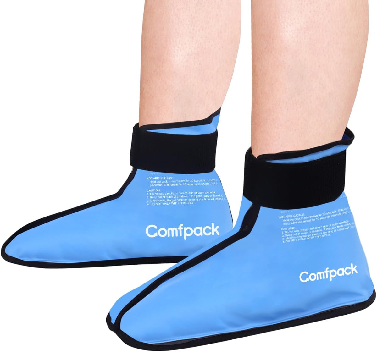 Easy To Wear - Comfpack ice boot for foot pain relief with rear & front opening design is easy to put on even for swollen feet. Equipped with a Velcro strap to secure it in place for hands-free use. Our plantar fasciitis relief ice pack can be used while sitting or lying down, and fits Women's shoe sizes 5 to 11 US & Men's shoe sizes 5 - 9 US.